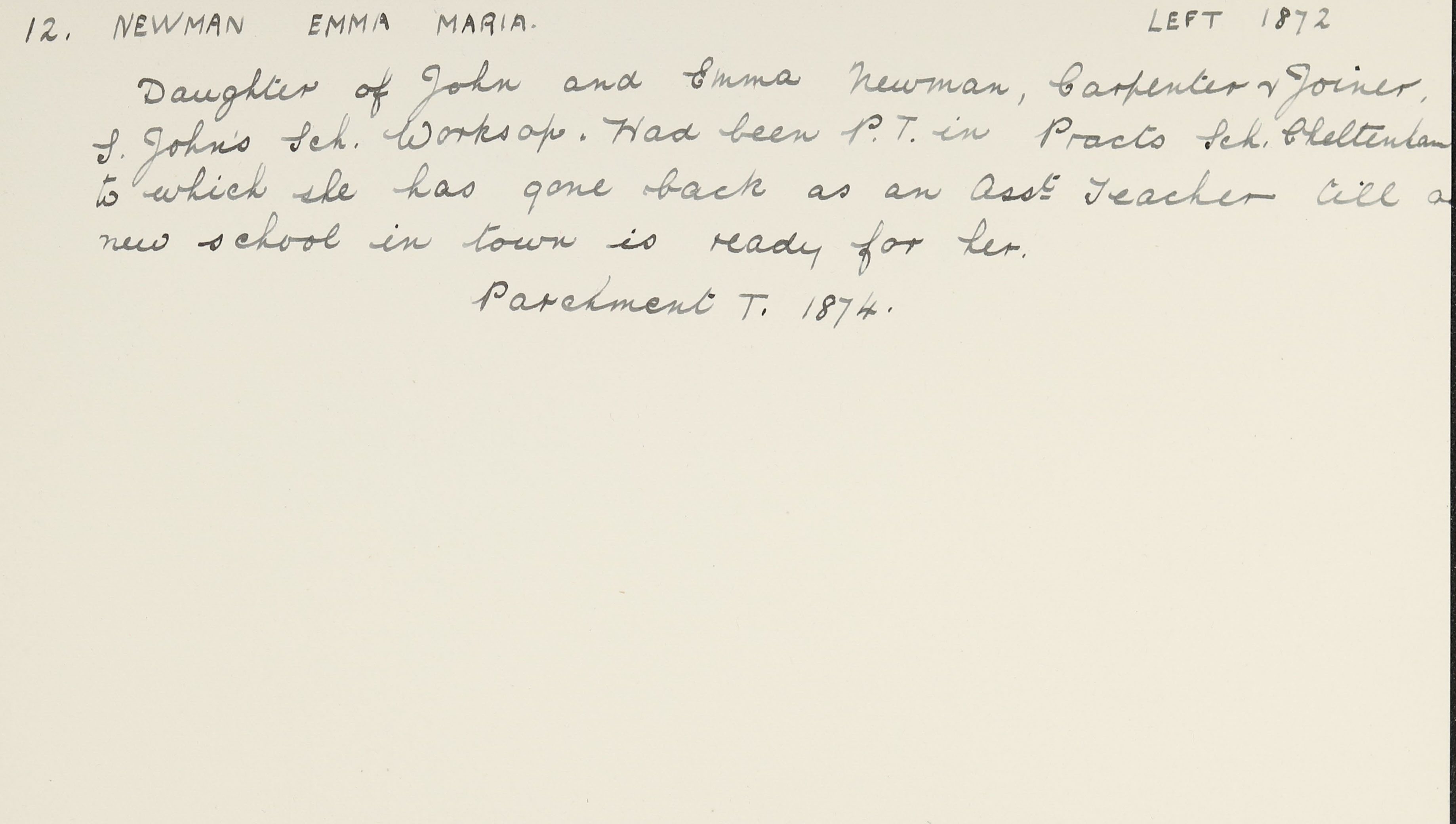 She is at North Street, Winchcombe. Her uncle, Henry Newman (b. 1819), is listed as ‘Grocers Assistant’. Emma, her aunt, Ann Newman (b. 1832) and her cousin, Annie Newman (b. 1848), are unlisted.