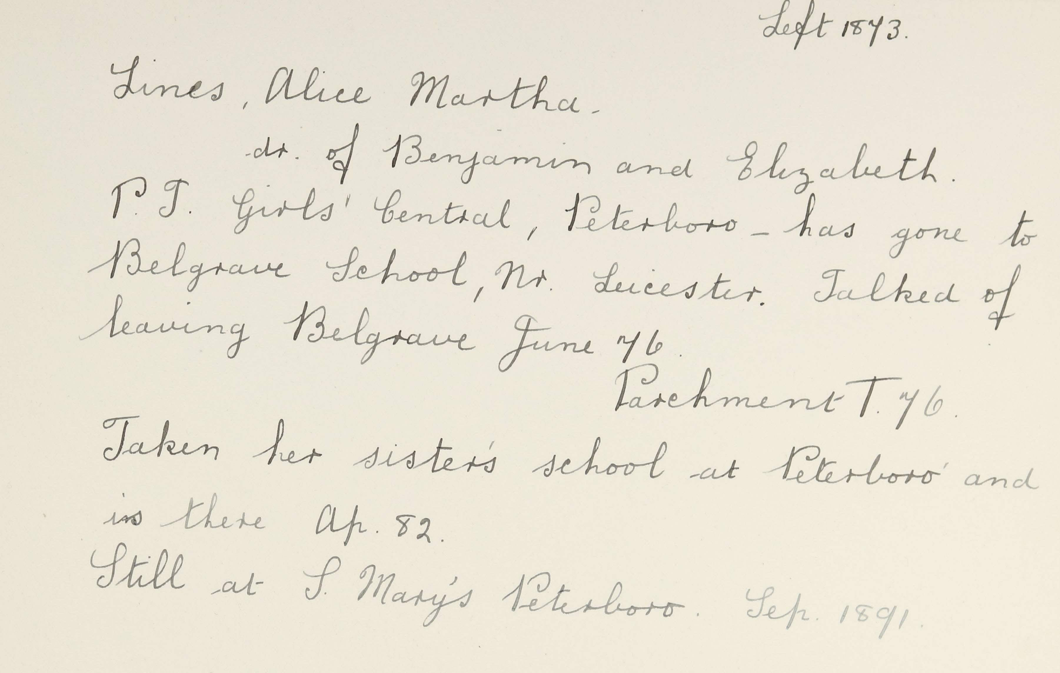 Address is St. Mary's School, Peterborough.