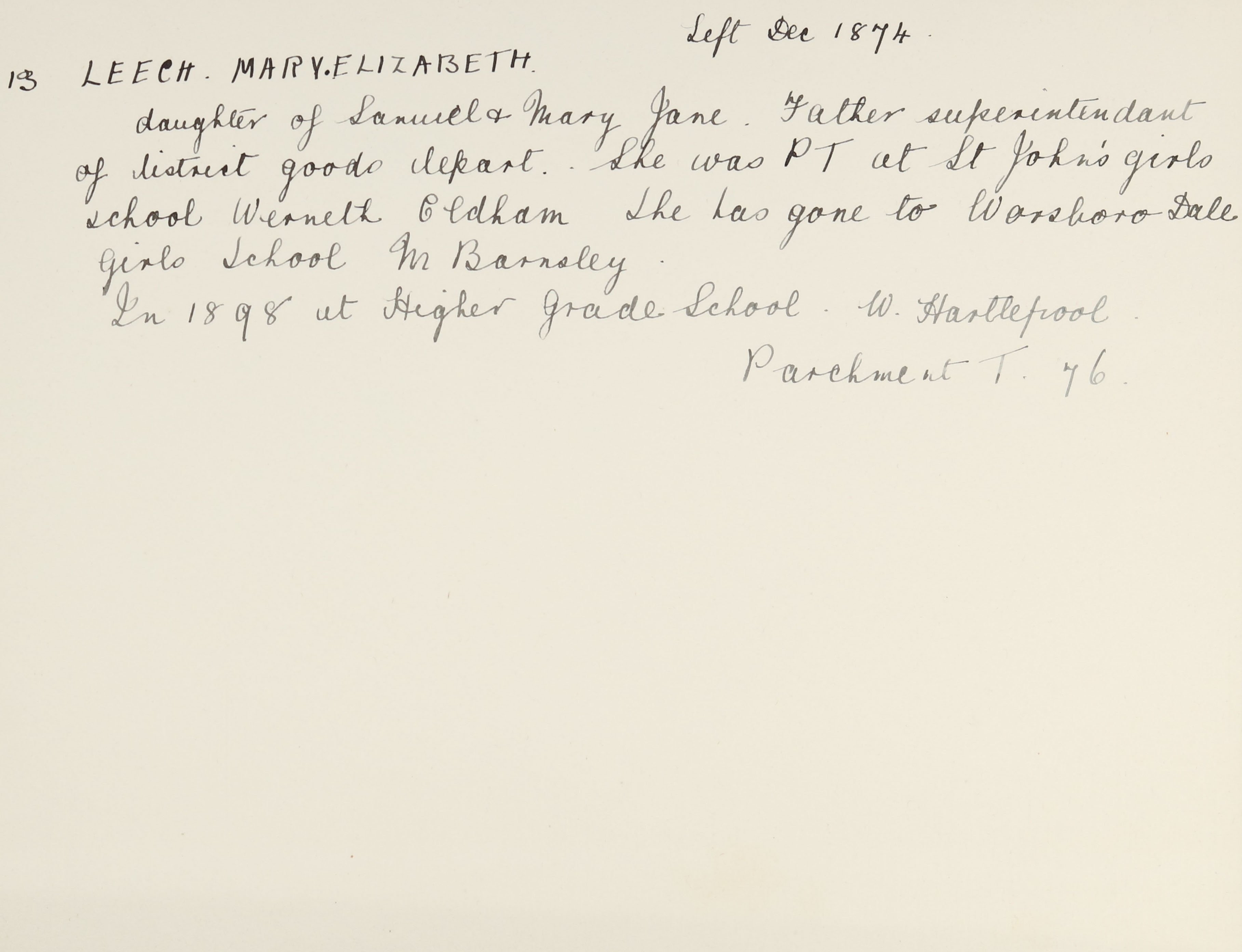 Father: Samuel Leech (b. 1832)