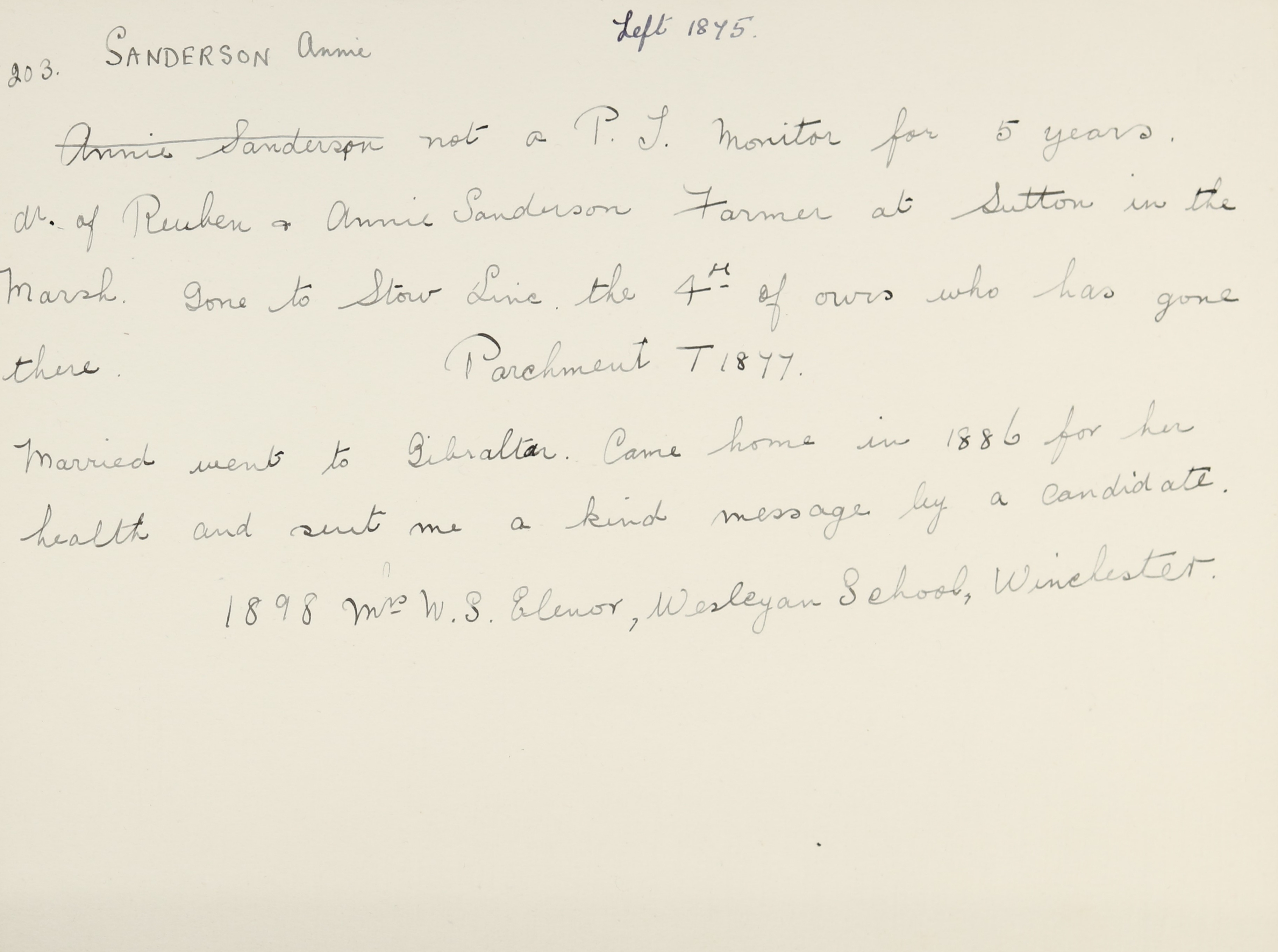 Address is Wesleyan School, Winchester.