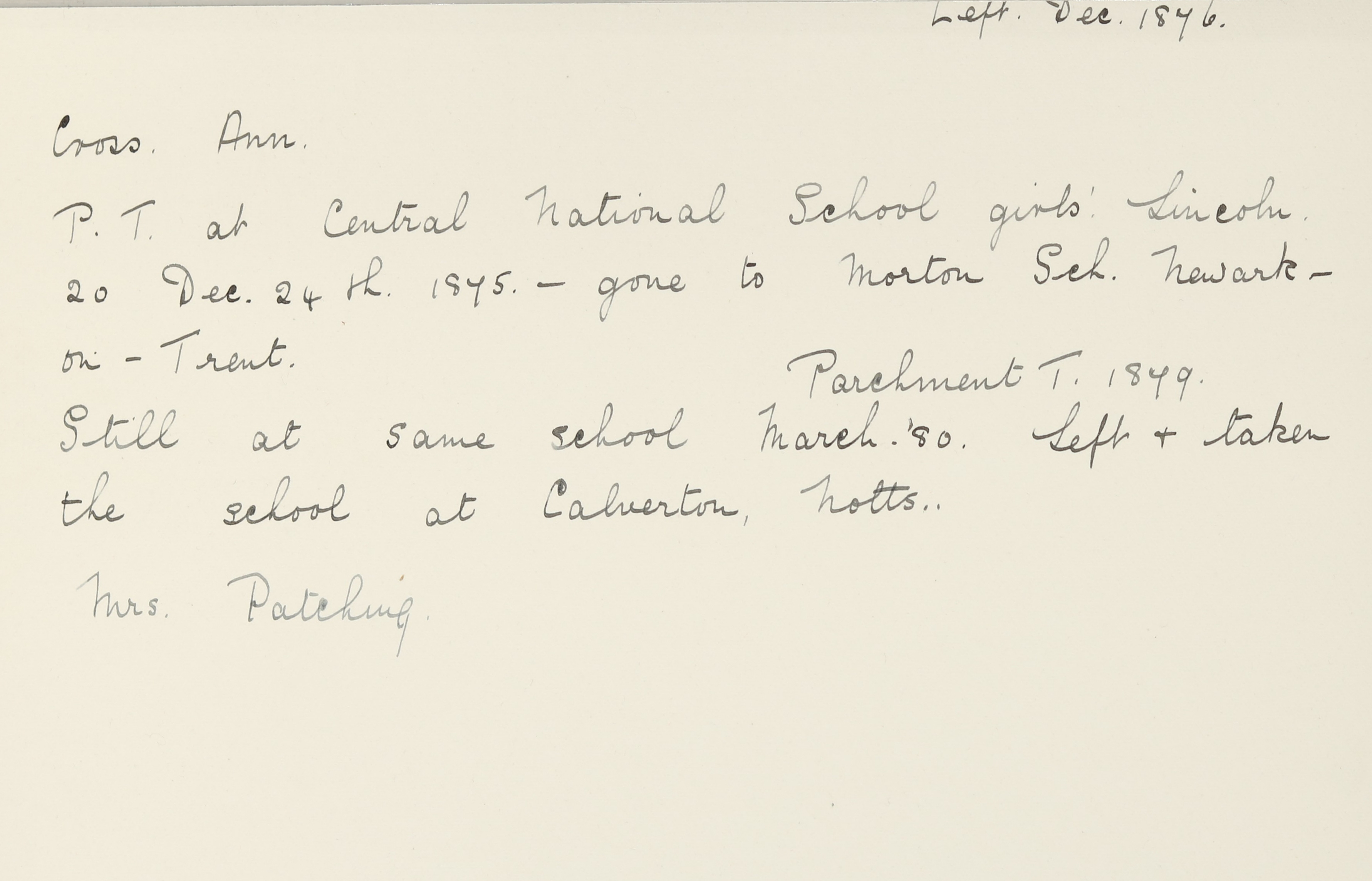 She is at Main Street, Calverton. Ann is listed as ‘School Mistress’.