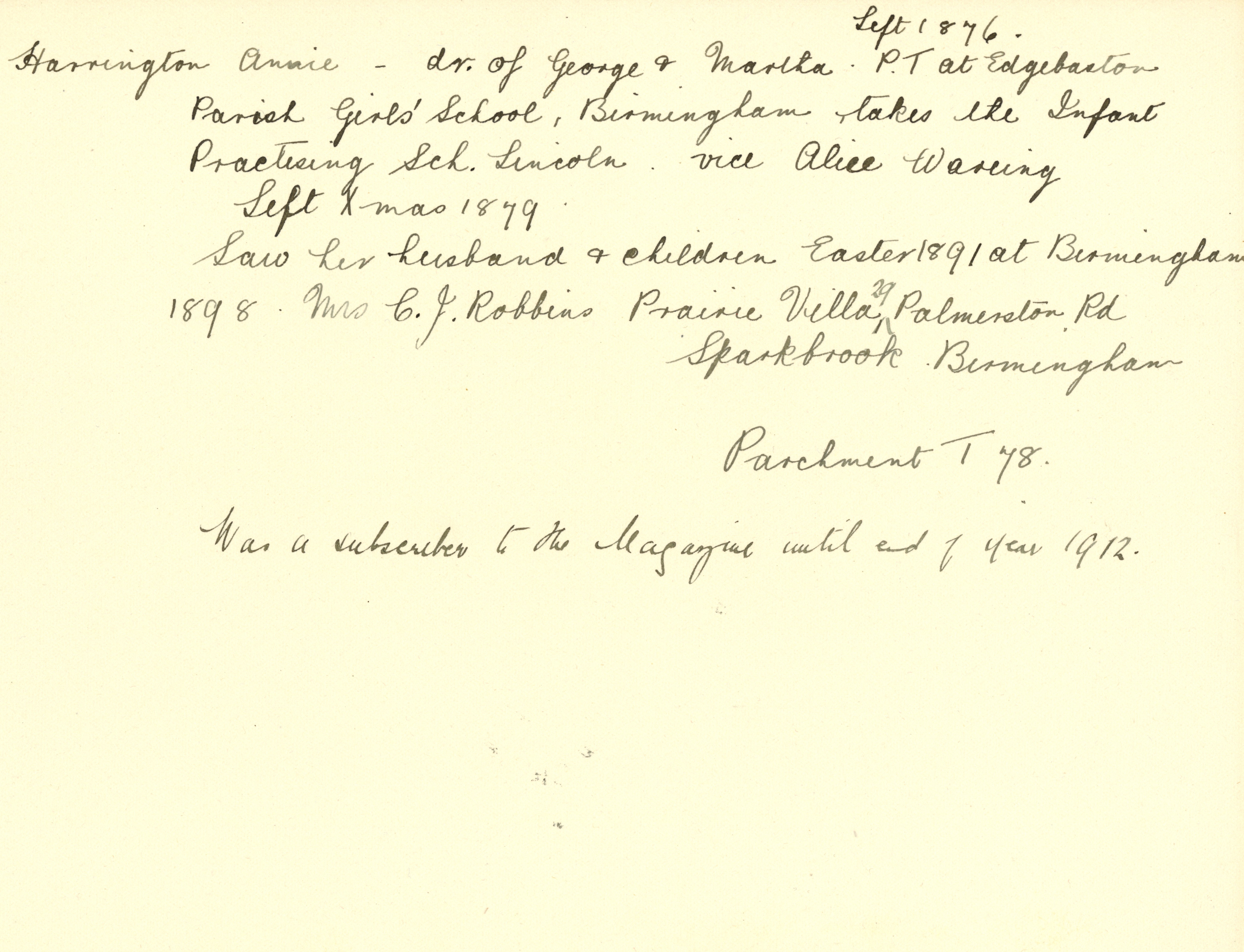She is at 15 Woodthorpe Road, King’s Heath. Her husband is listed as ‘Meat Salesman’. Anne is unlisted