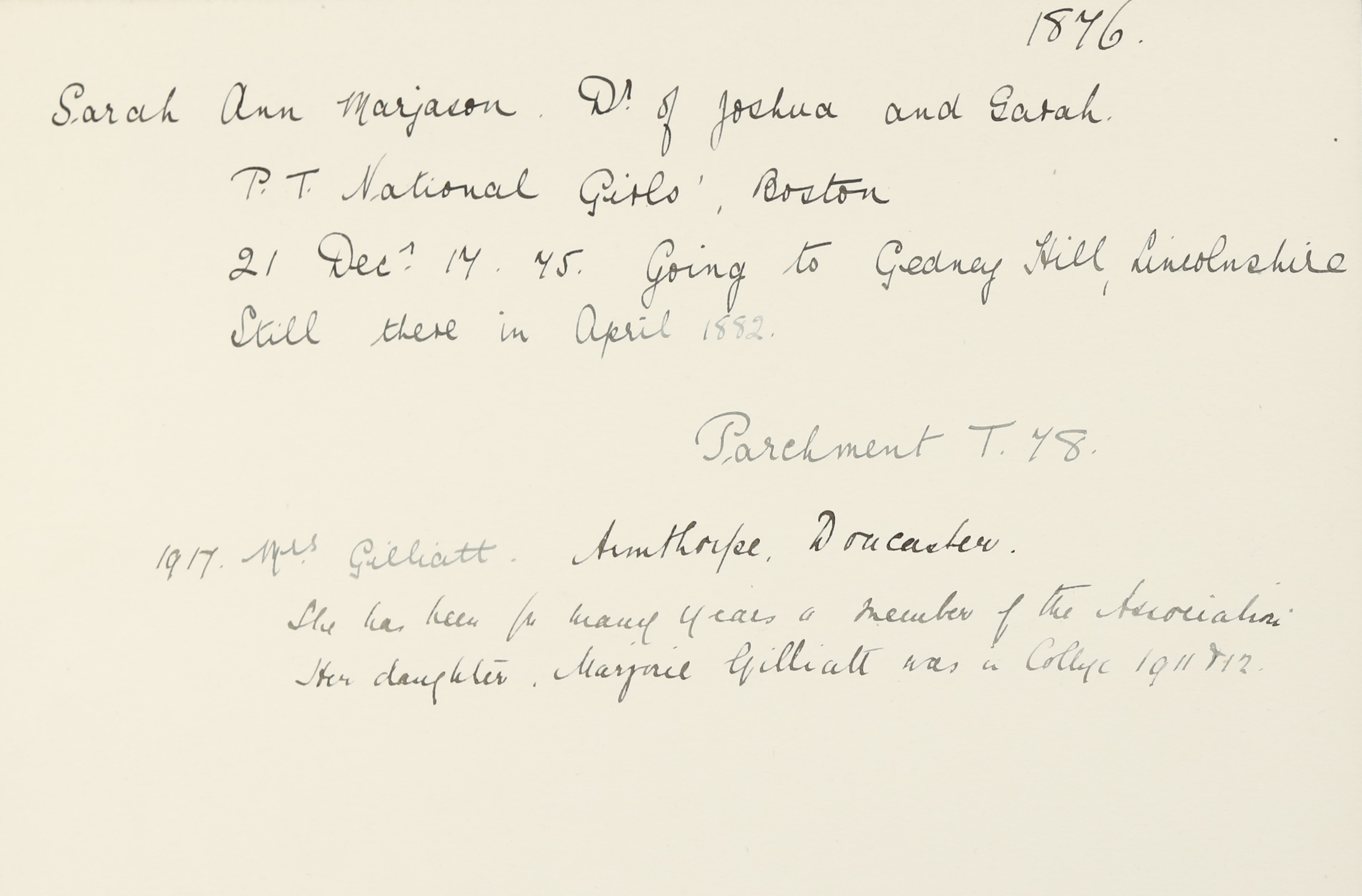 Mother: Sarah Marjason (b. 1827)