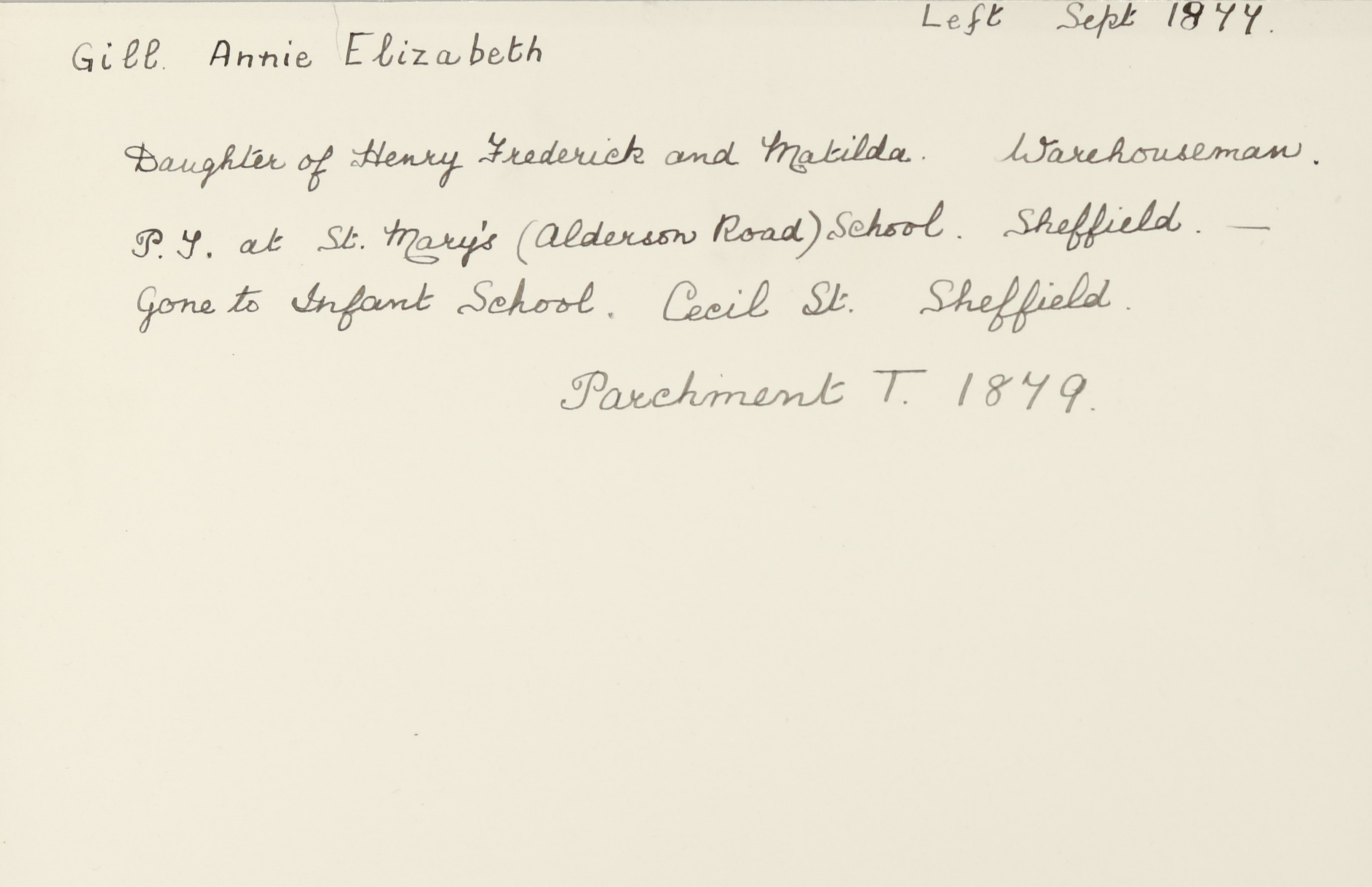 Baptised: 7 November 1858, Sheffield