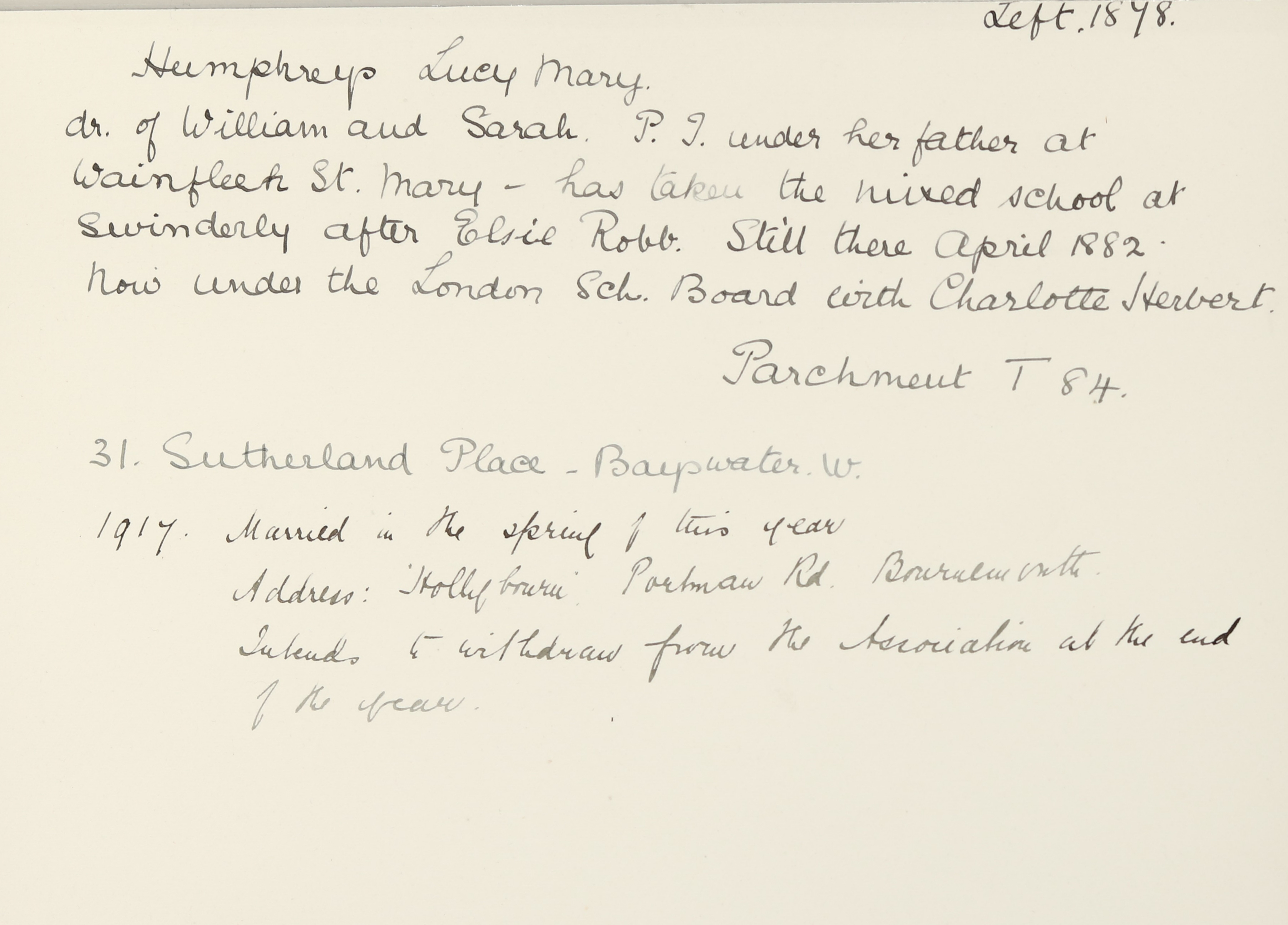 She is at 31 Sutherland Place, Paddington. Her brother, Arthur, is listed as ‘Assistant Master in Secondary School’. Lucy is listed as ‘Assistant Mistress in LCC school’.