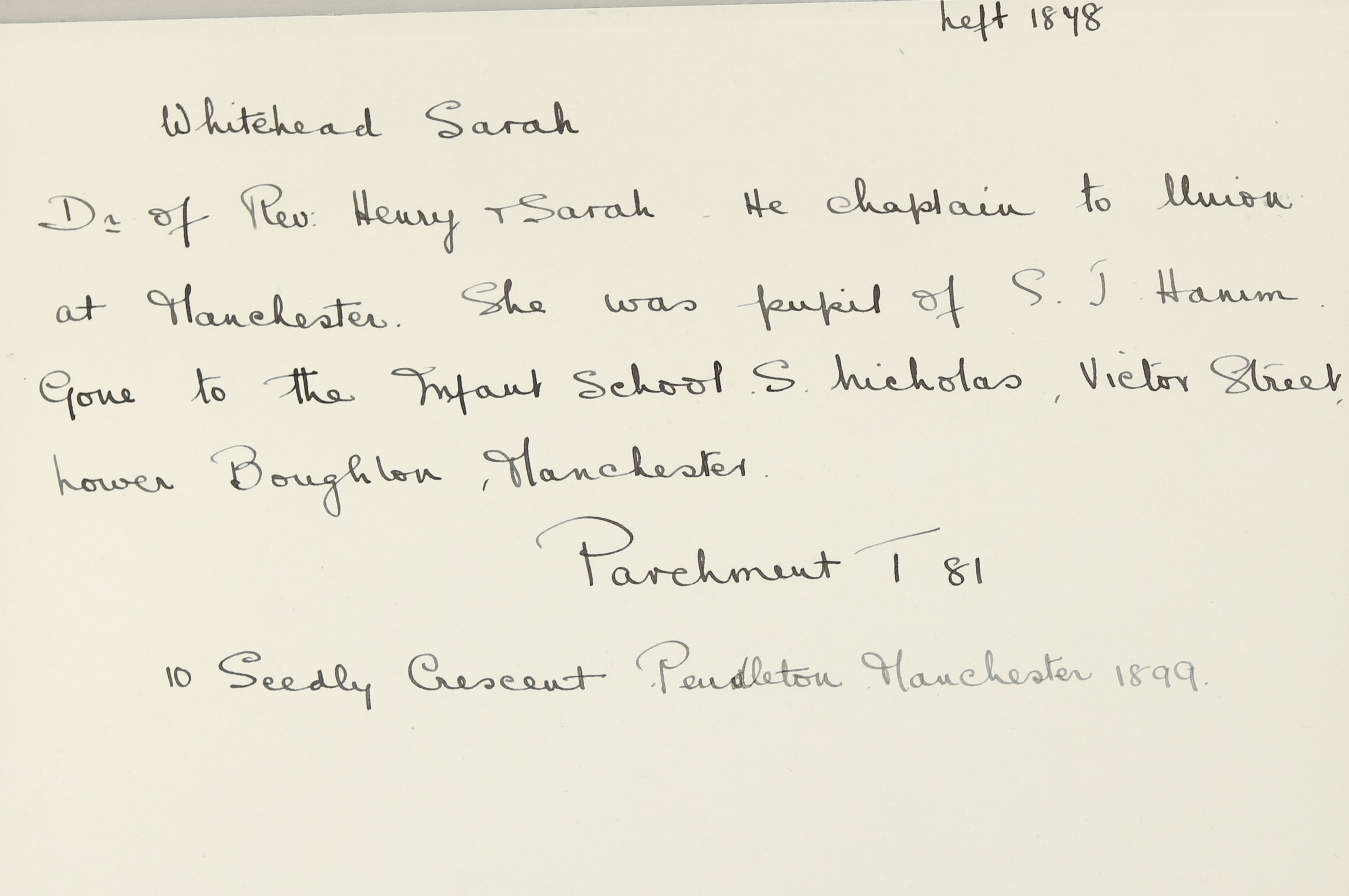 Address is 10 Seedley Crescent, Pendleton, Manchester.