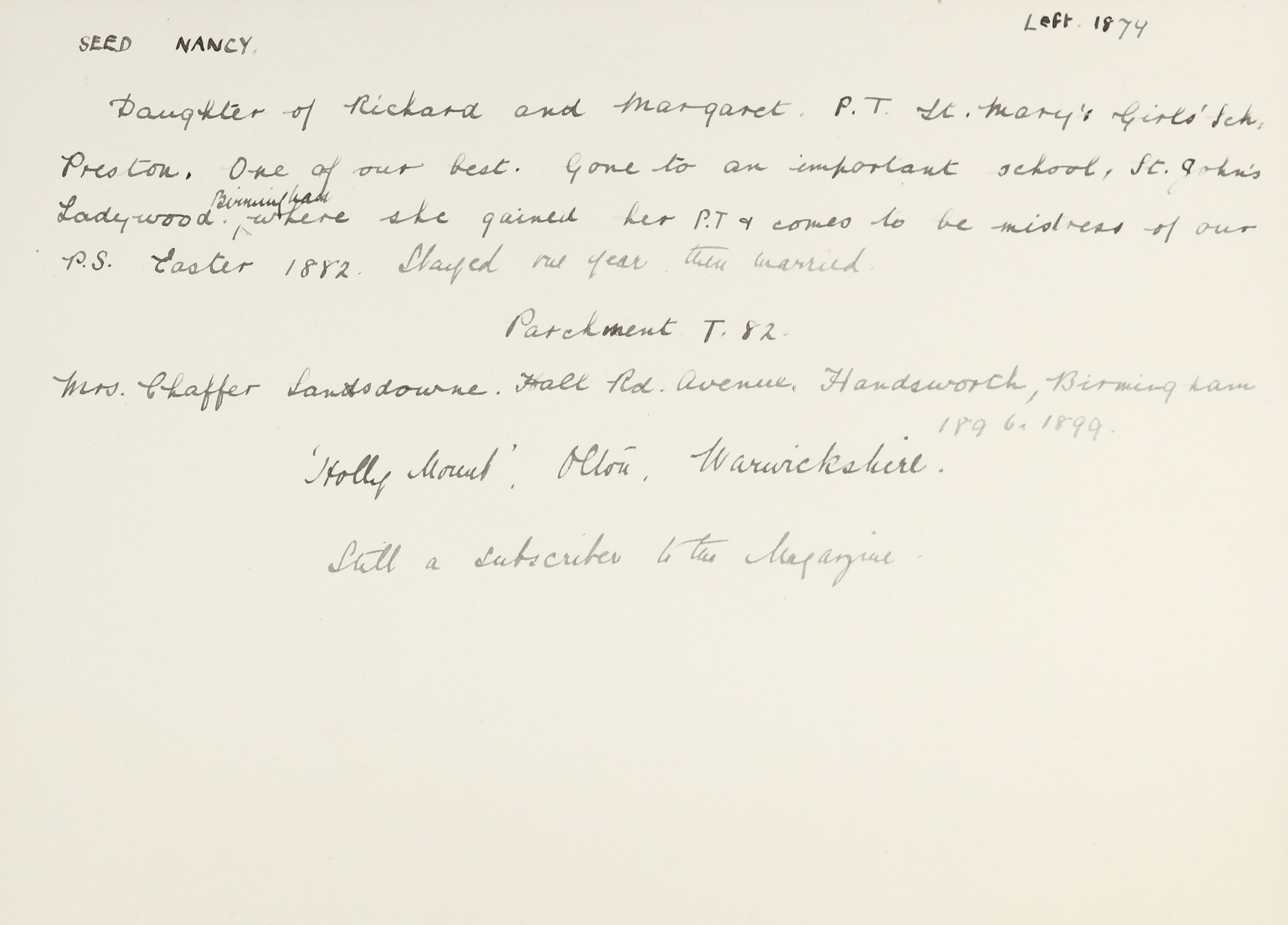 Mother: Margaret Seed (b. 1818)