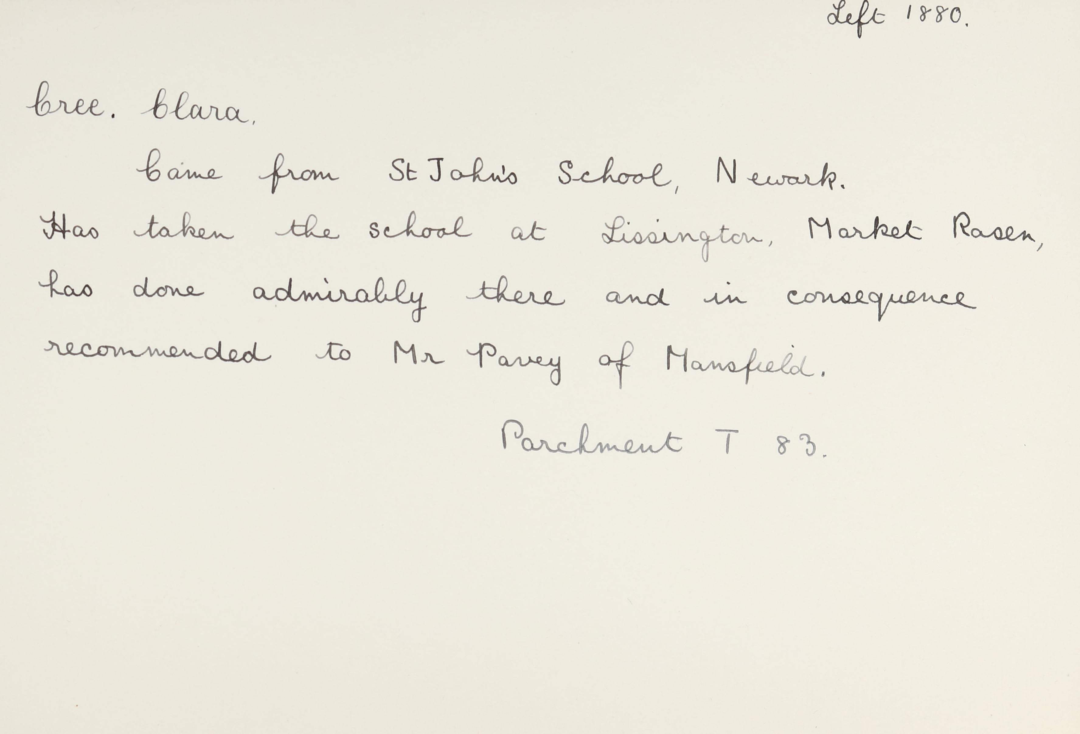 She is at Lissington, Caistor. Clara is listed as ‘Schoolmistress’. Her sister, Alice, is listed as ‘Pupil Teacher’.