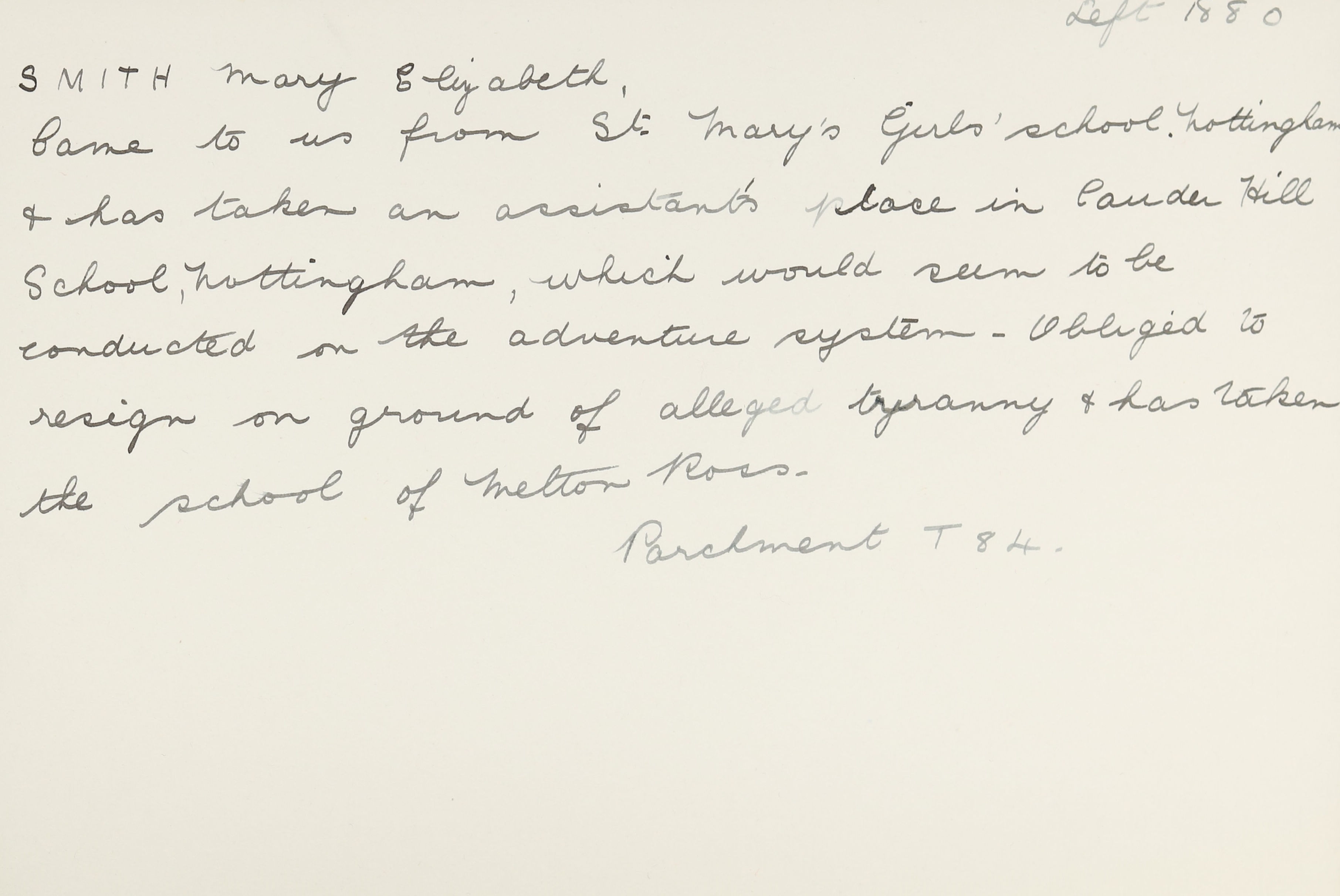 She is at Union Road, Nottingham. Her father is listed as ‘Master Cabinet Maker Employing 11 men and 4 Boys’. Mary and her mother are unlisted. Her aunt, Sarah Smith (b. 1824) is listed as ‘Upholsterer’. Her aunt, Harriet Smith (b. 1837), is listed as ‘Milliner’. There is a visitor, Sarah A Kershaw (b. 1832), listed as ‘Overlooker in Lace Warehouse’.