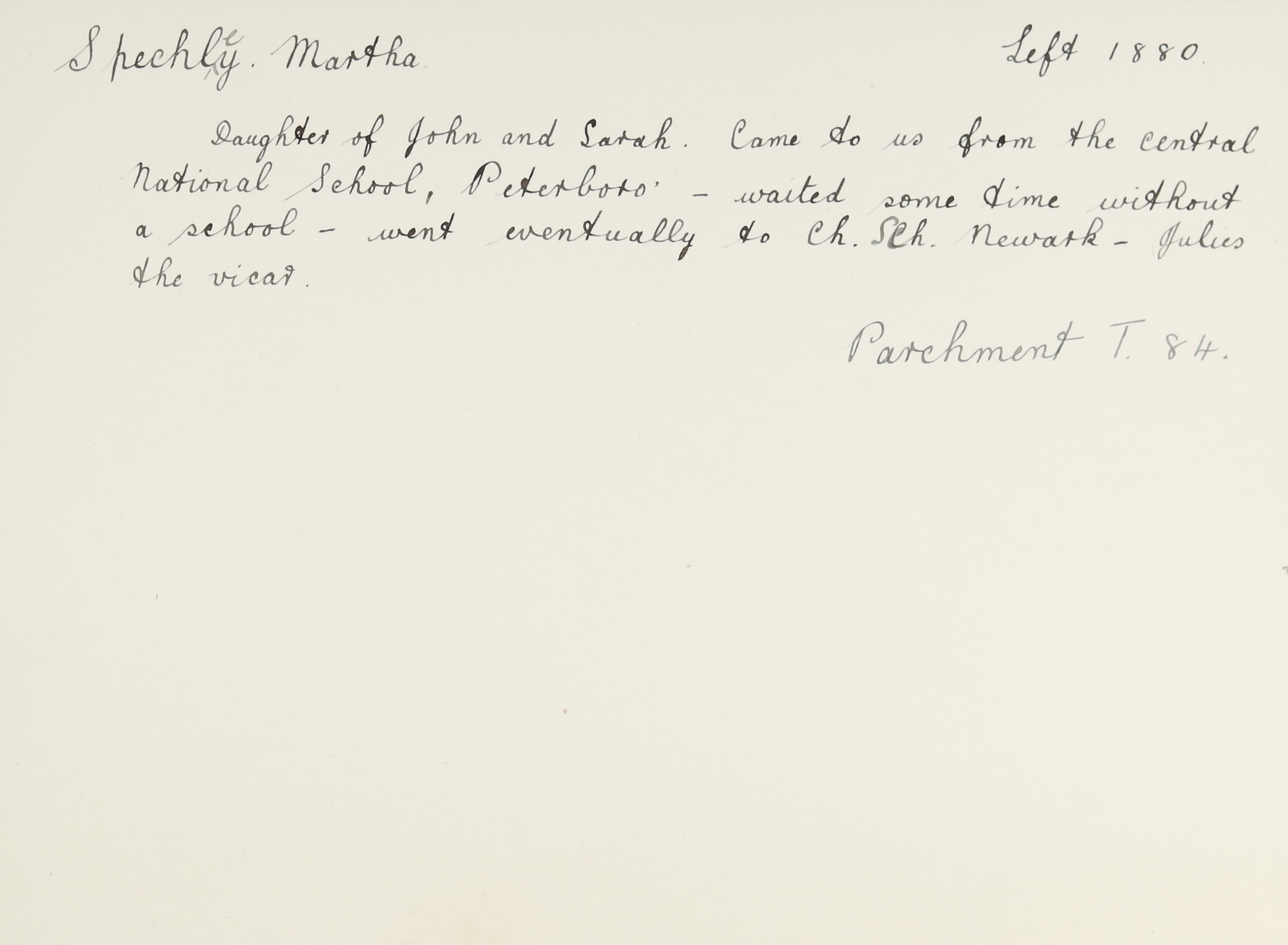 She is at Works Cottage, Thorney, Peterborough. Her father is listed as ‘Foreman Carpenter’. Martha is listed as ‘Teacher Unemployed’. Her mother is unlisted.