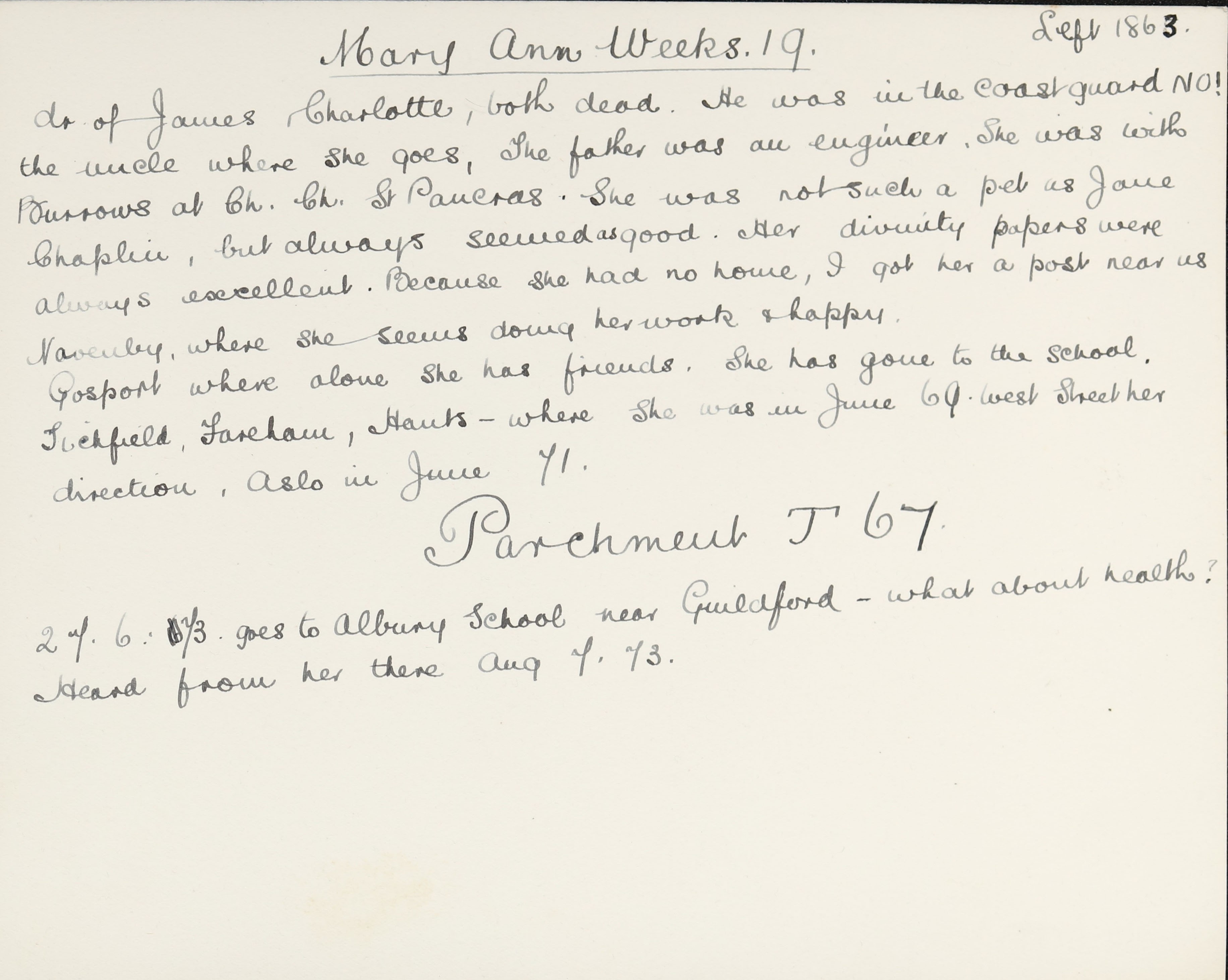 Mother: Charlotte Weeks (b. 1820)
