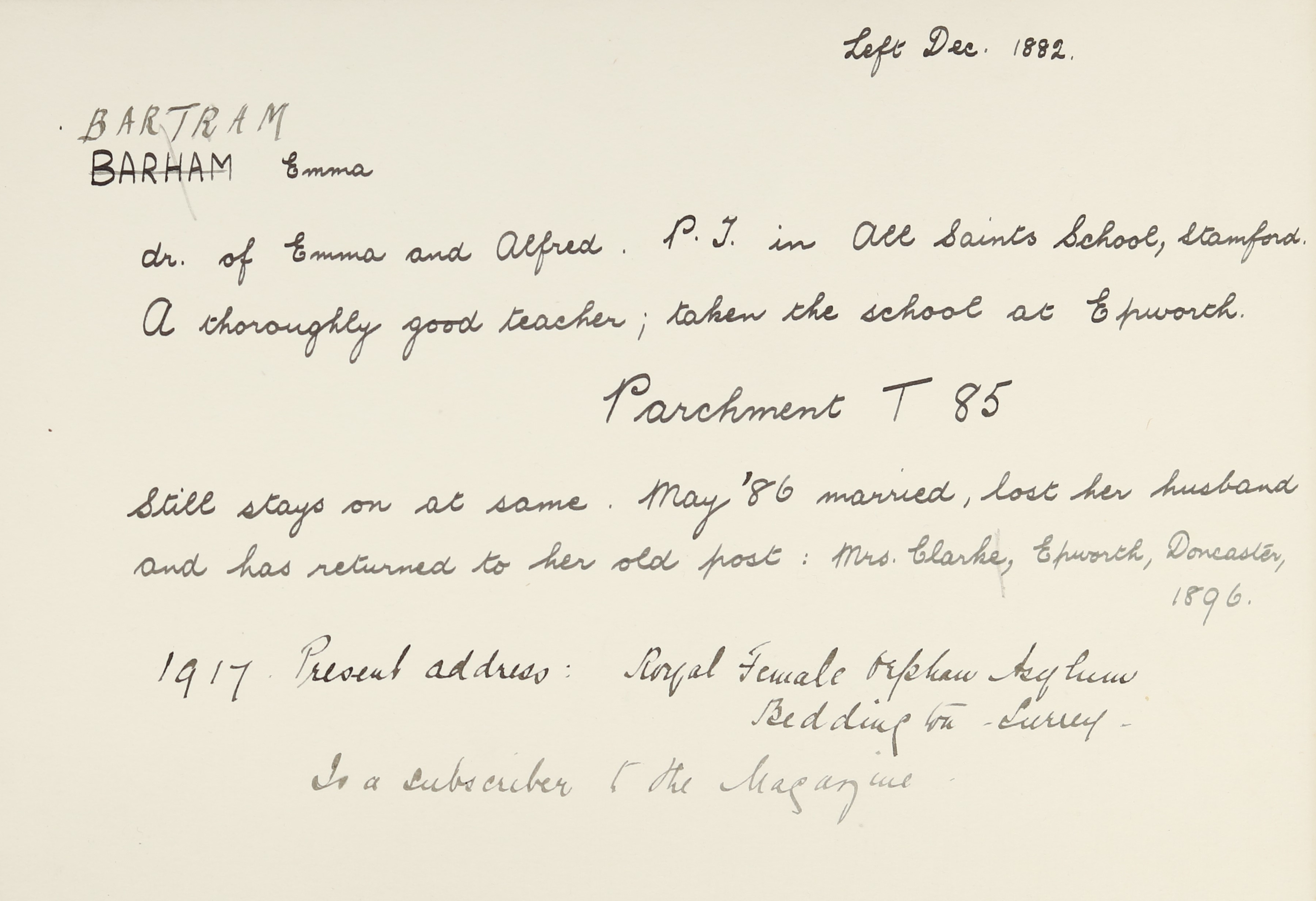 Address is Royal Female Orphan Asylum, Beddington, Croydon.