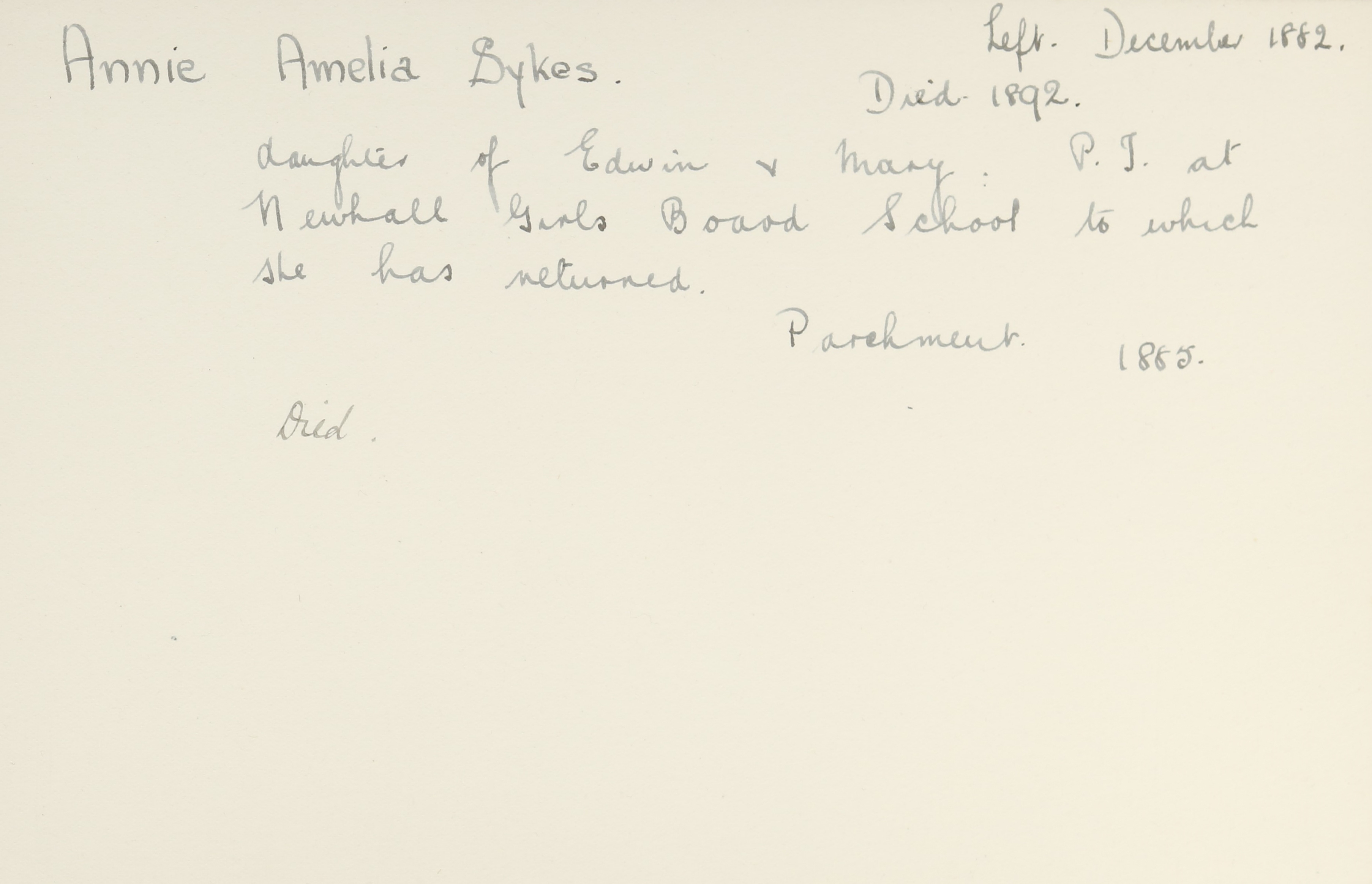 LITTLE, Annie Amelia of 223 Nottingham Street, Sheffield (wife of John Little) died 06 February 1892. Administration Wakefield 14 June to the said John Little, mechanical draughtsman. Effects £296, 18s, 7d.
