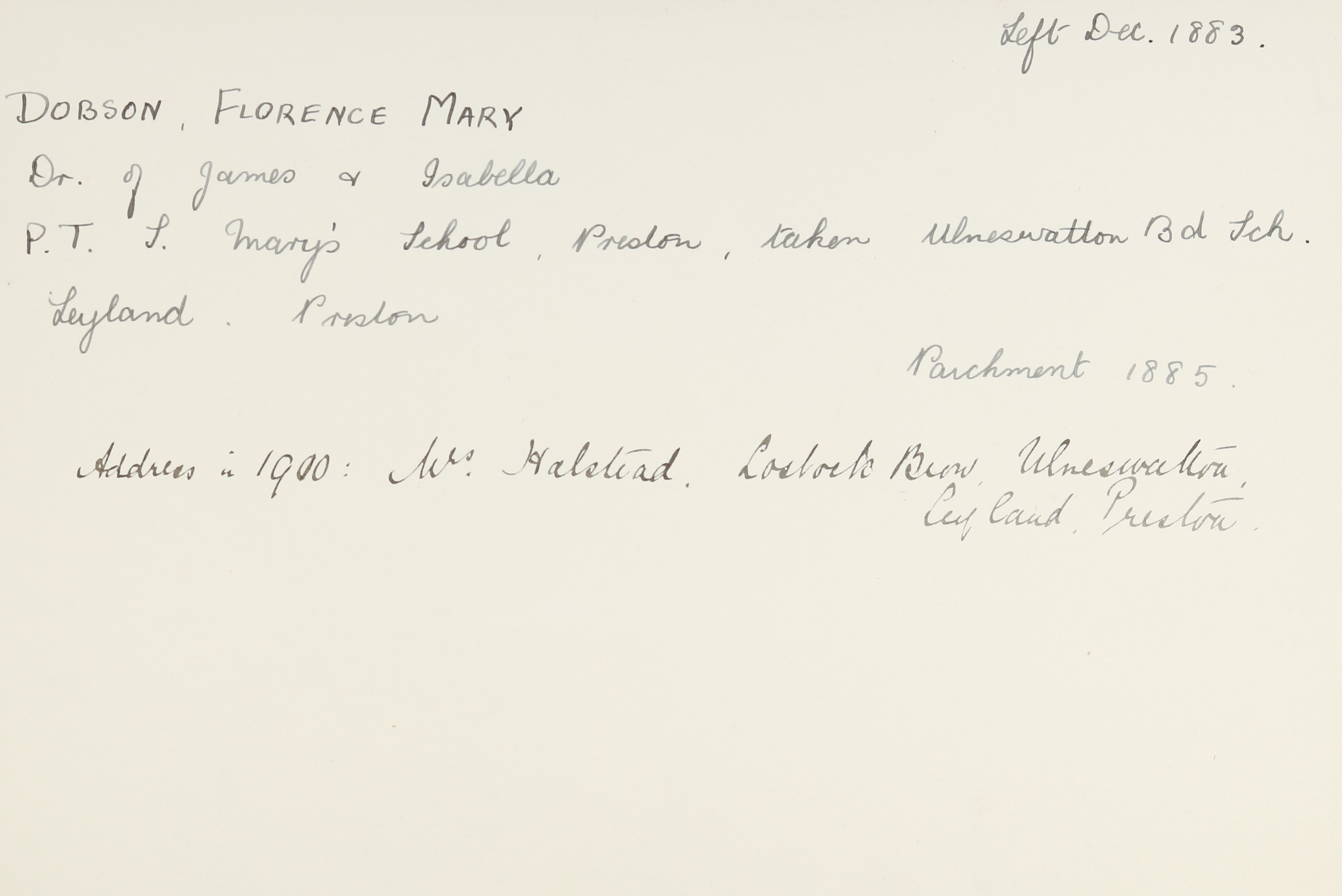 She is at Latham Street, Preston. Her father is listed as ‘Printer’. Florence, her mother and siblings (James, Edith, Arthur and Louise) are unlisted.