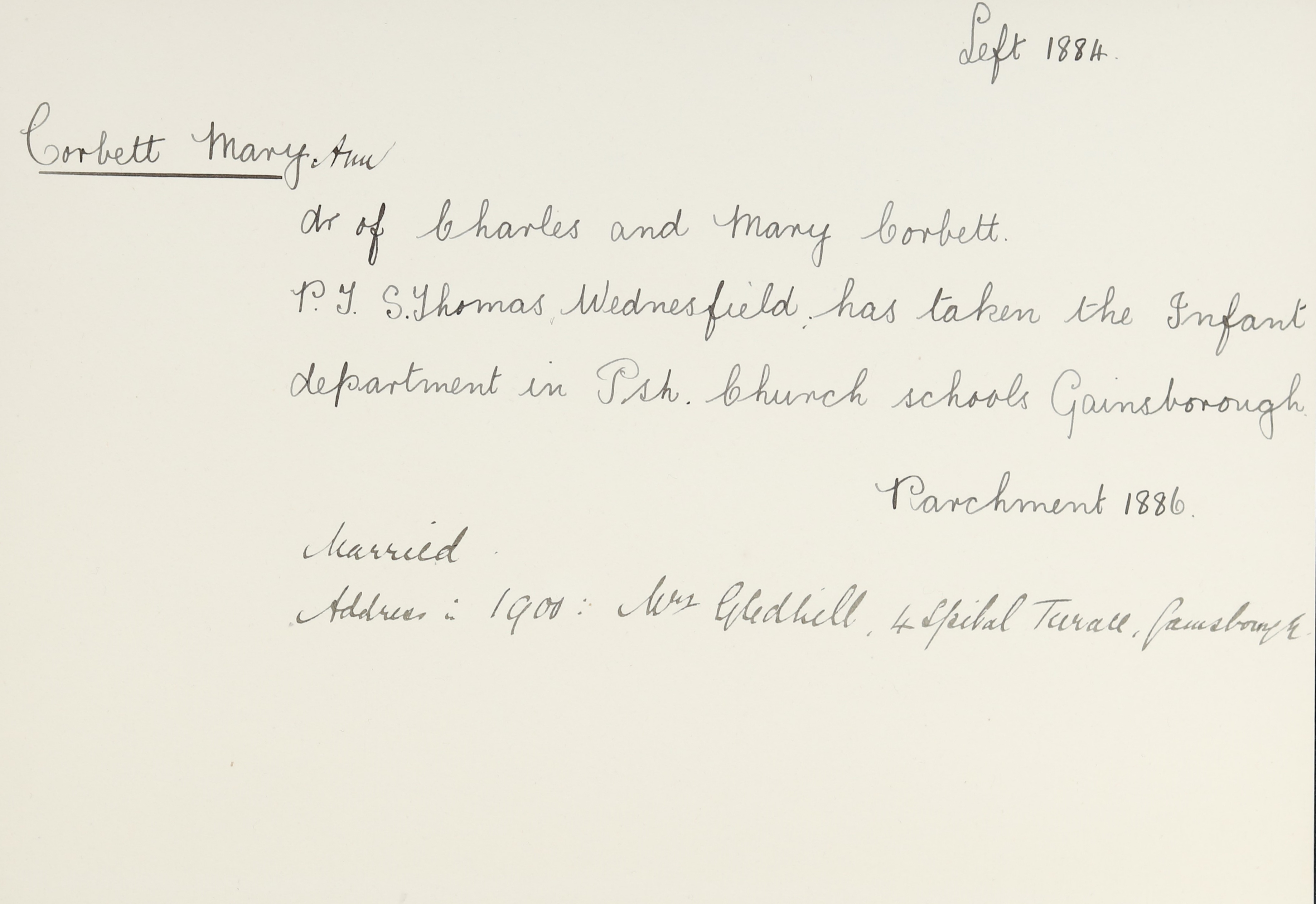 Address is 4 Spital Terrace, Gainsborough.
