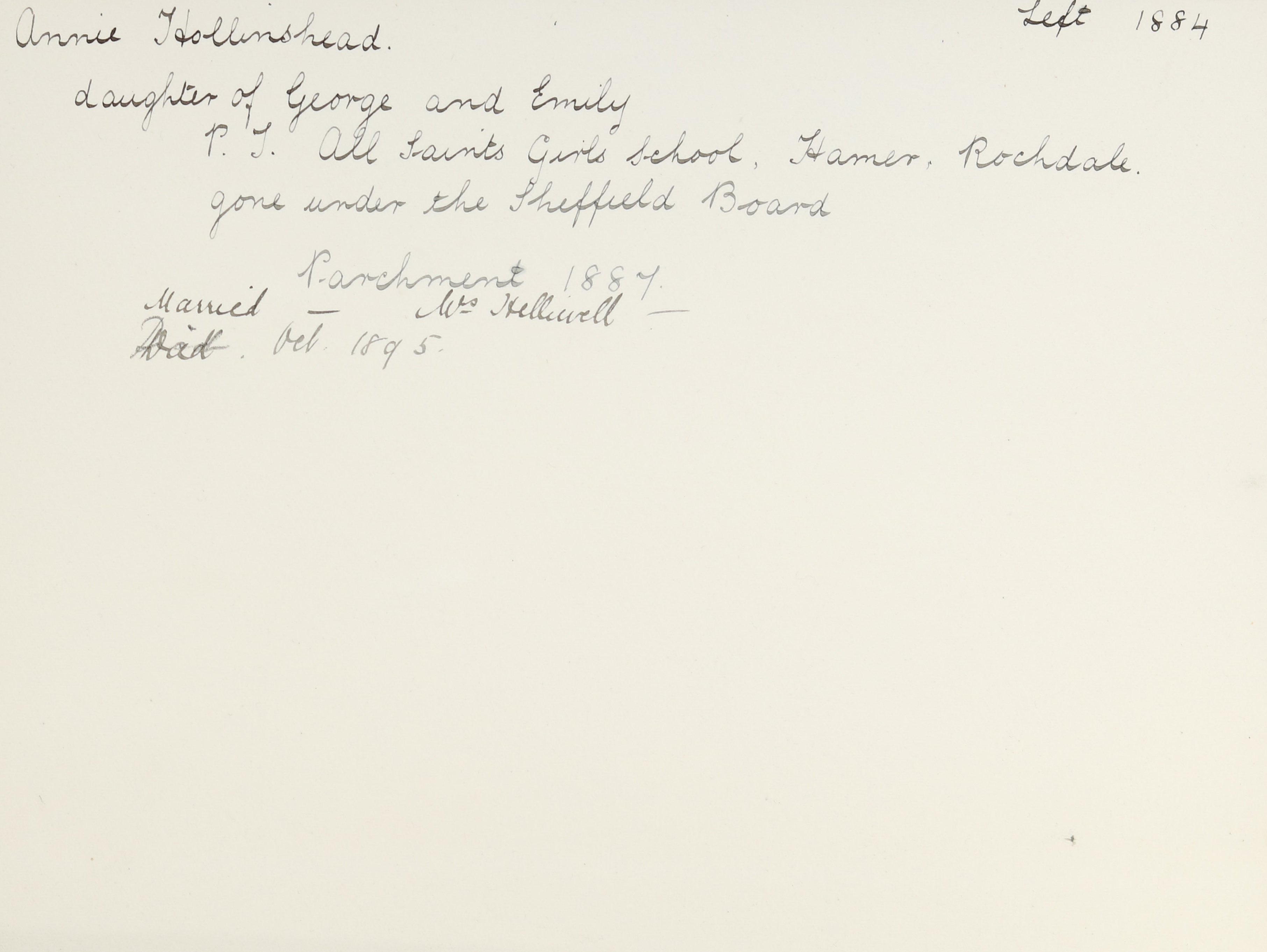 Mother: Emily Hollinshead (b. 1840)