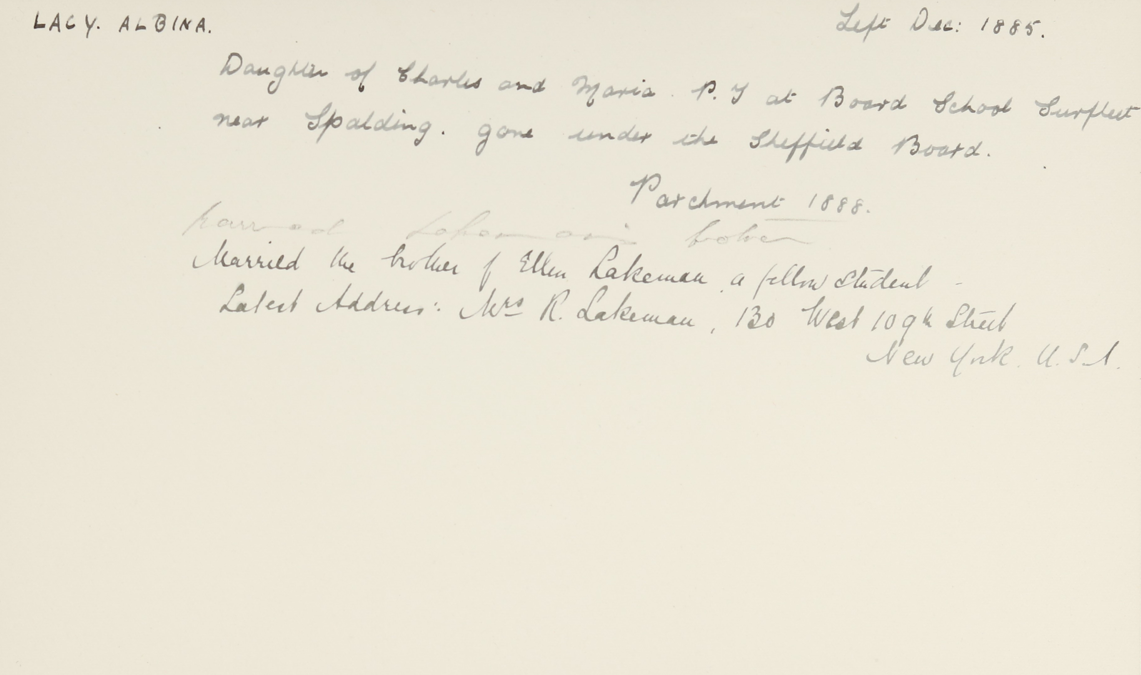 Father: Charles Lacey (b. 1833)