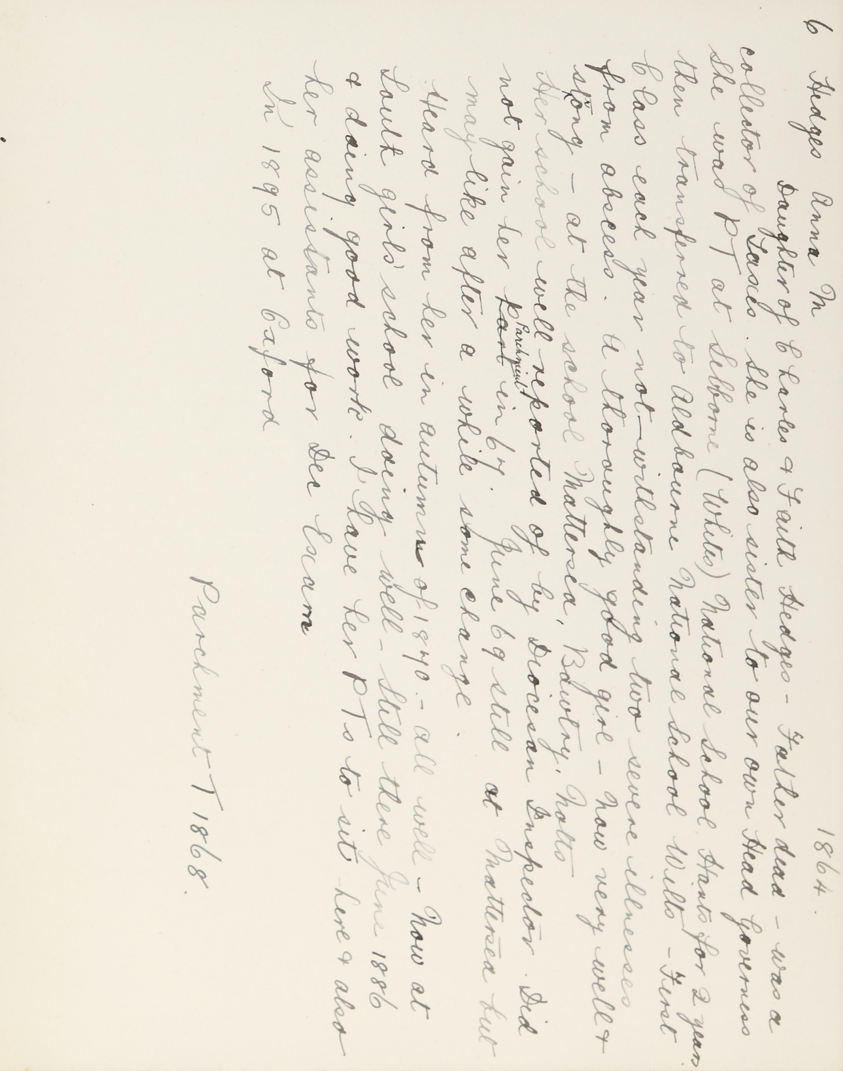 She is at Clifton, Hamilton Road, Oxford. Anna and her sister, Fanny, are listed as ‘Non-Retired School Mistress’.