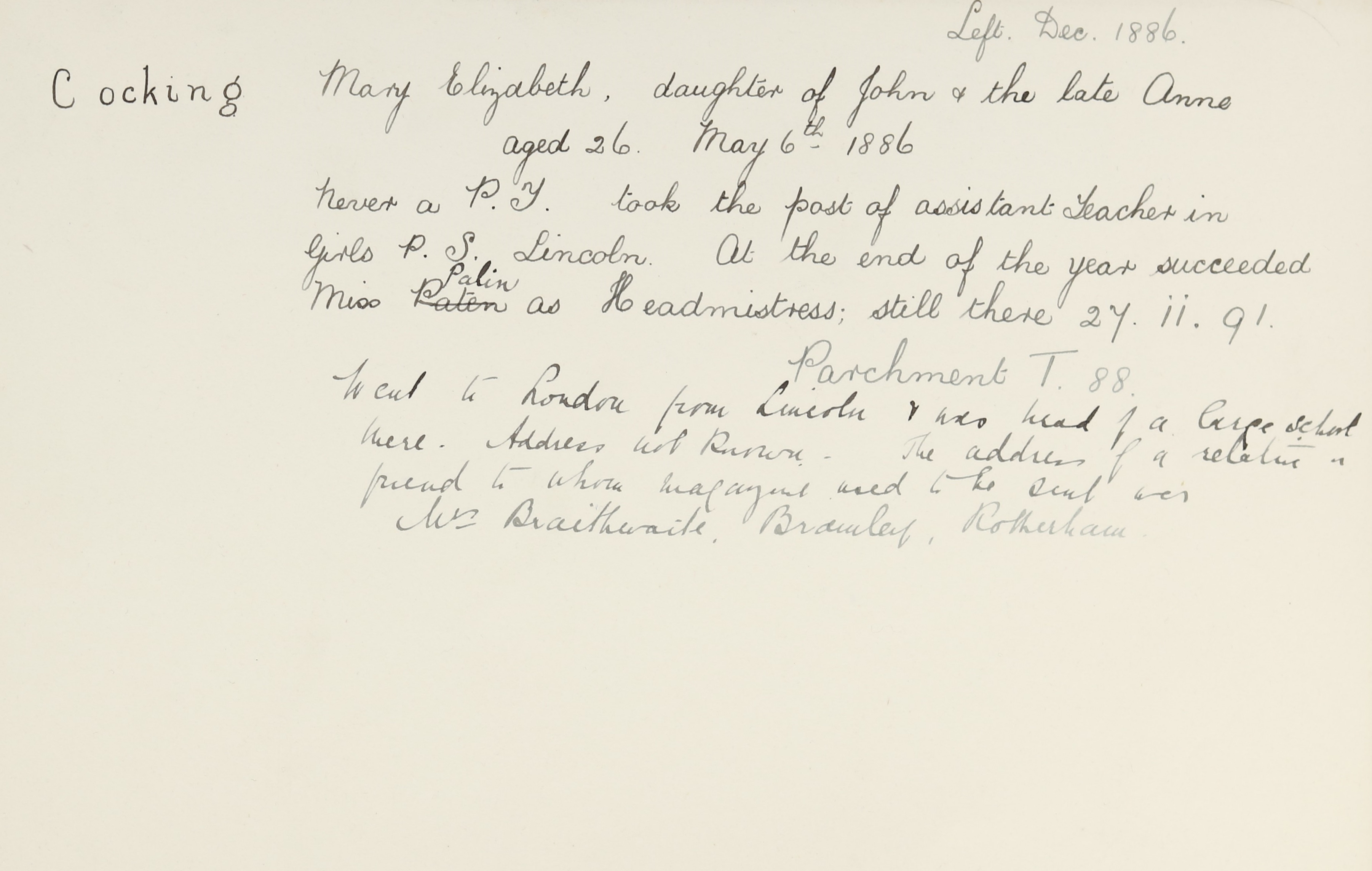 COCKING, Mary Elizabeth of Graystoke, Farnham Common, Slough, Buckinghamshire, spinster died 28 May 1933 at King Edward VII Hospital, Windsor. Probate London 26 July to Charles Frederick Stevens, manager and Ella Montgomery Crisp, spinster. Effects £2,582, 11s, 2d.