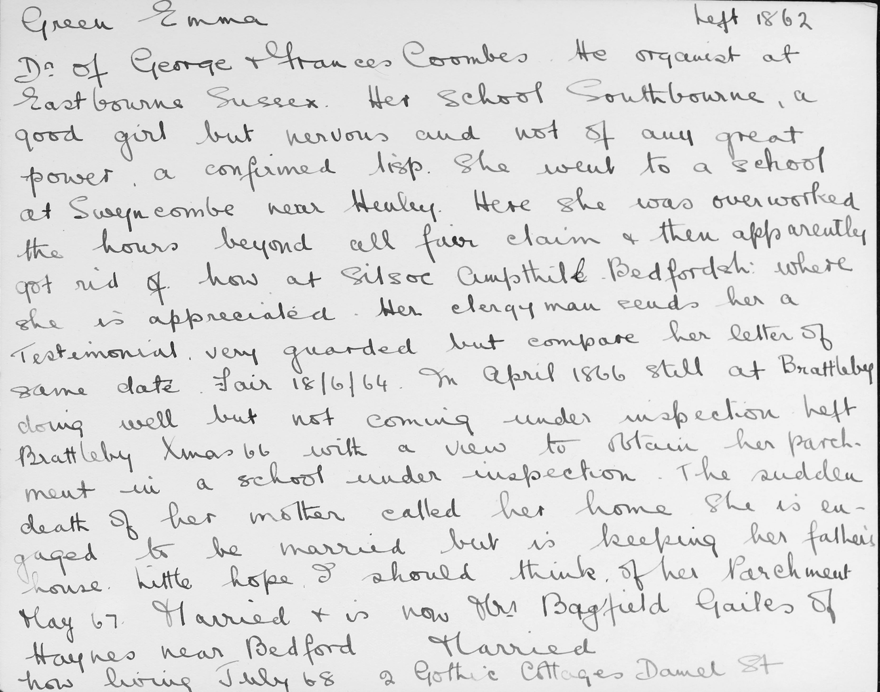 Sisters: Eleanor Green (b. 1829), Frances Green (b. 1828), Eliza Green (b. 1835), Harriett Green (b. 1845)