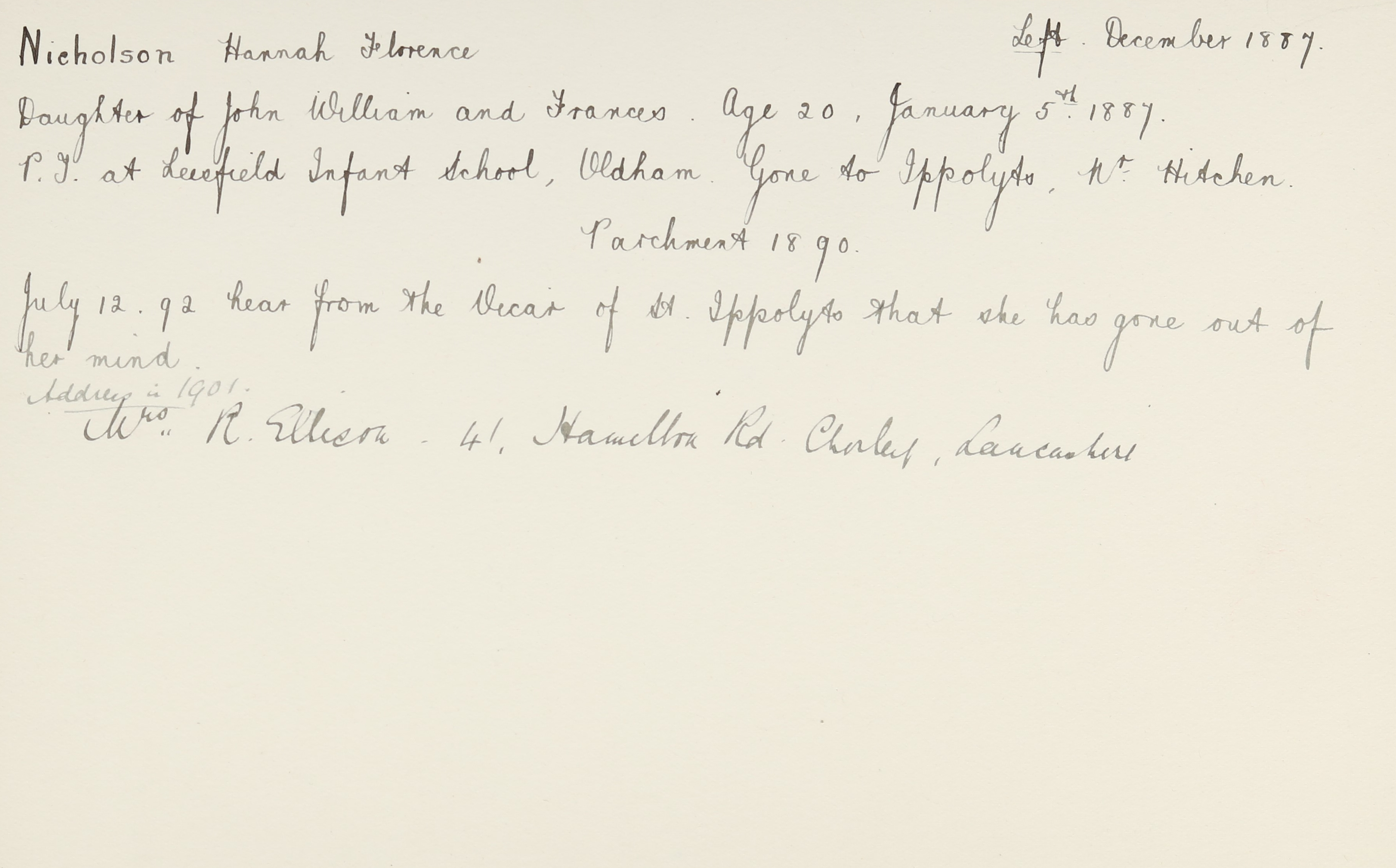Father: John William Nicholson (b. 1840)