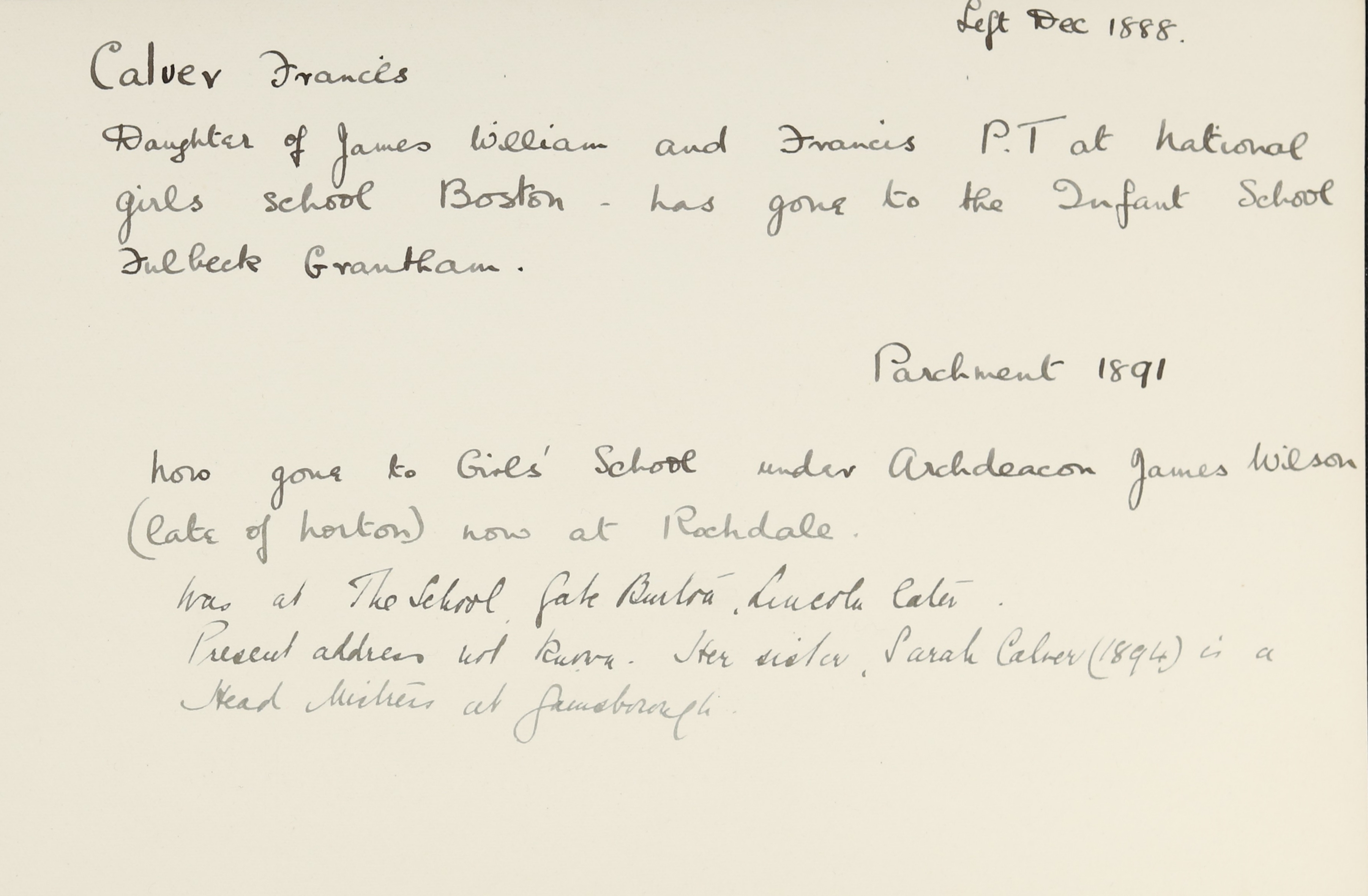 Mother: Frances Calver (b. 1835)