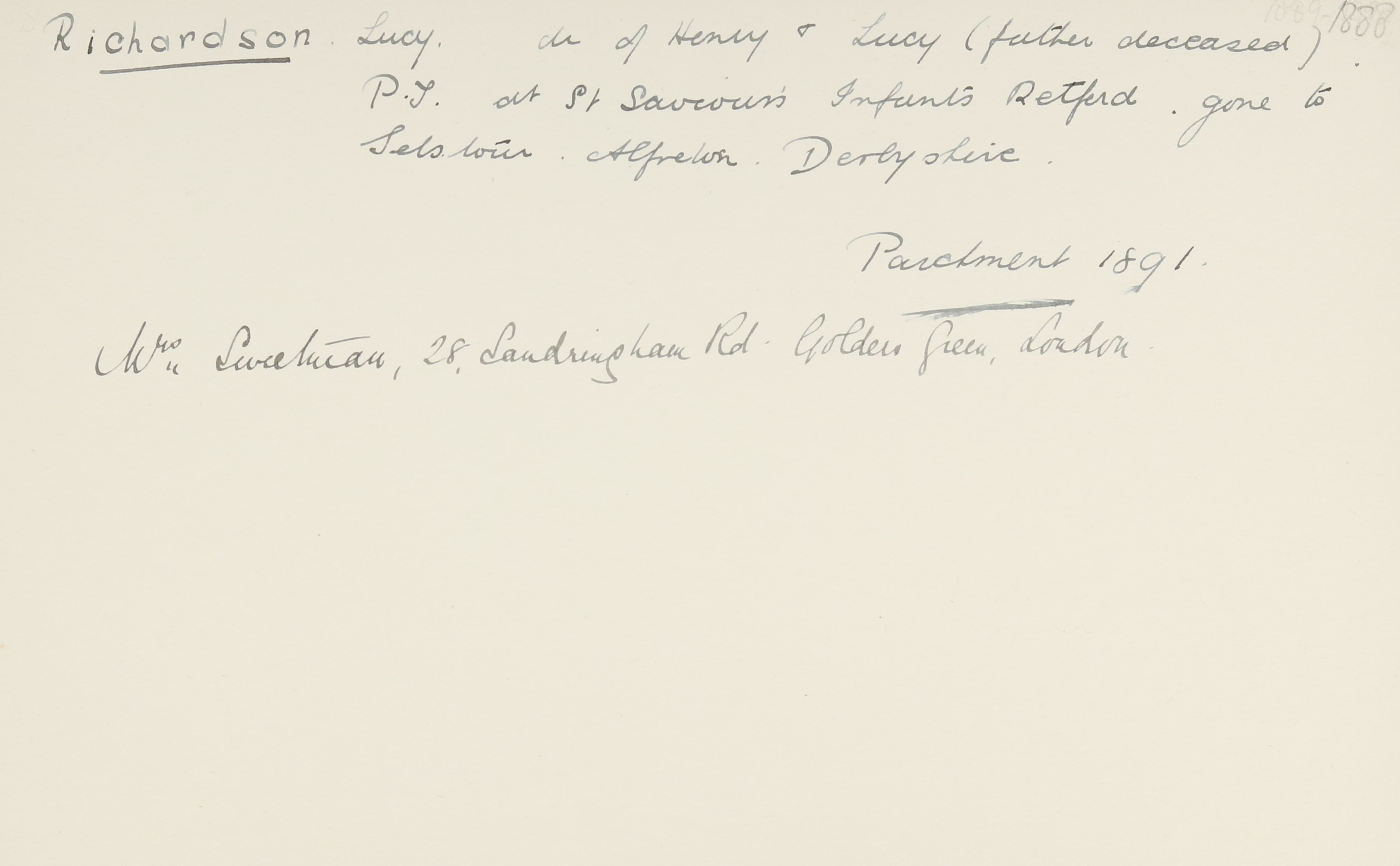 She is at Moorgate, Clarborough. Her father is listed as ‘Market Gardener’. Her mother is listed as ‘Straw Bonnet Maker’. Lucy is unlisted.