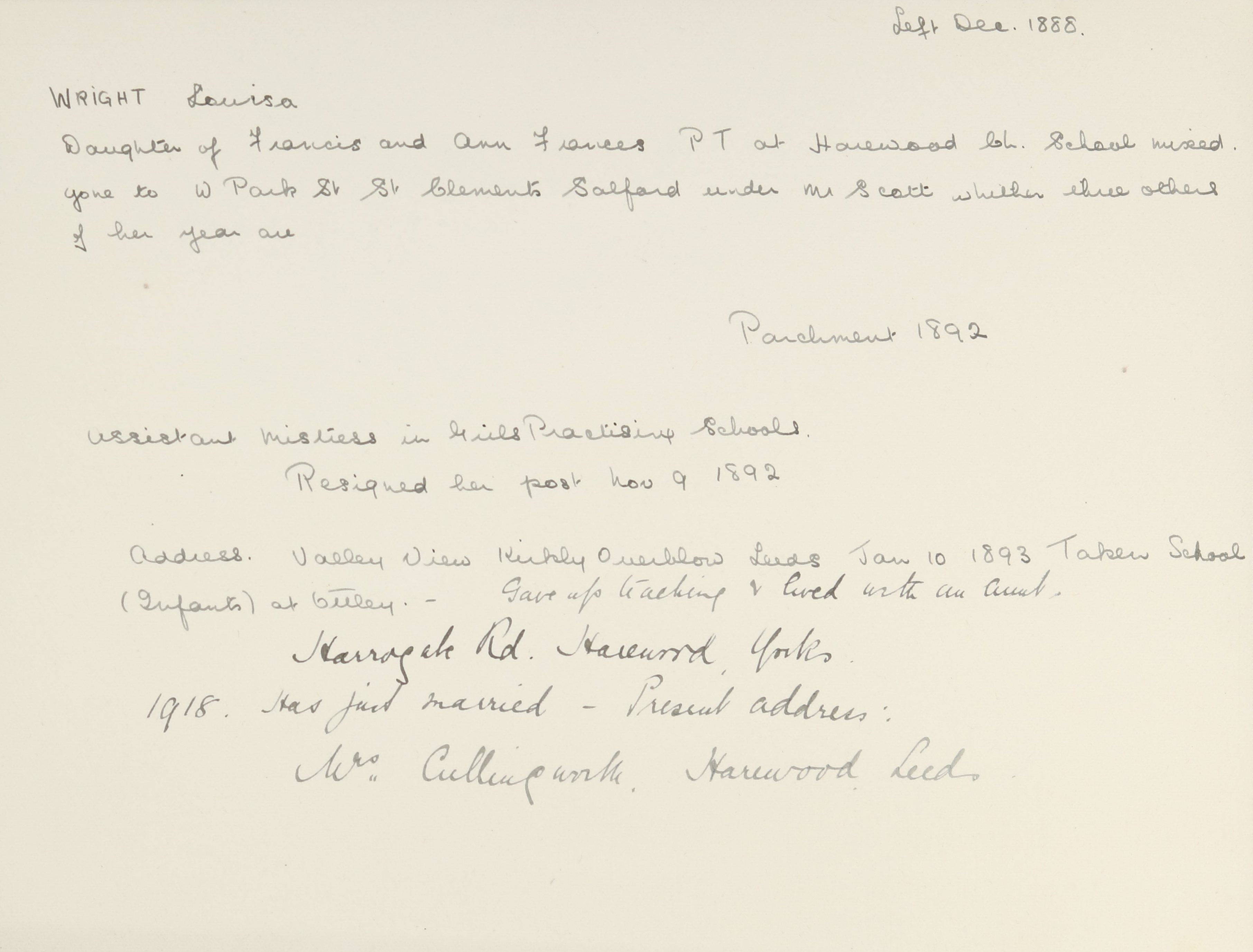 Sisters: Fanny Wright (b. 1861), Emma Wright (b. 1865), Lucy Wright (b. 1867), Ellena Wright (b. 1869), Ann Wright (b. 1873)