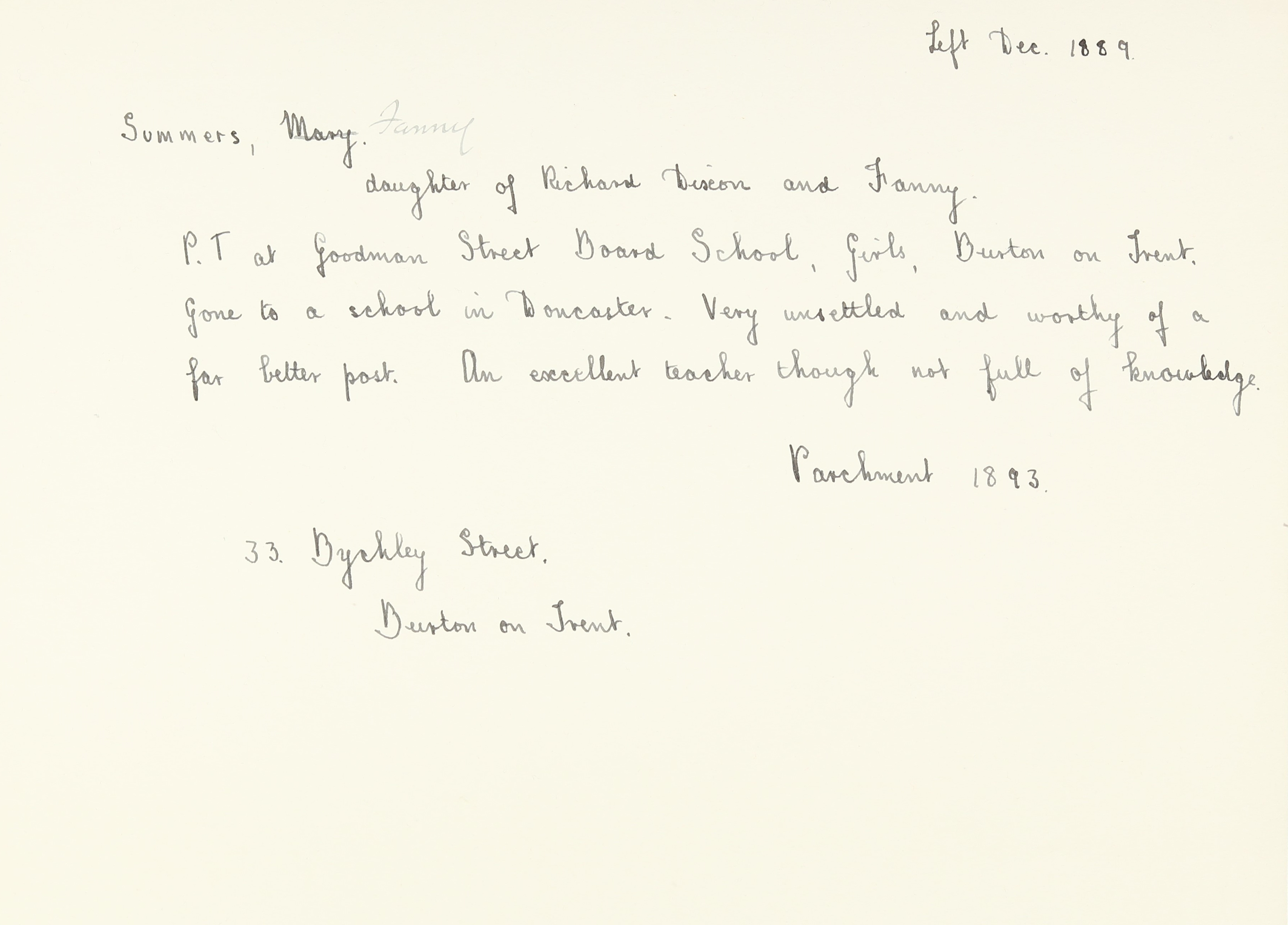 Mother: Fanny Summers (b. 1839)