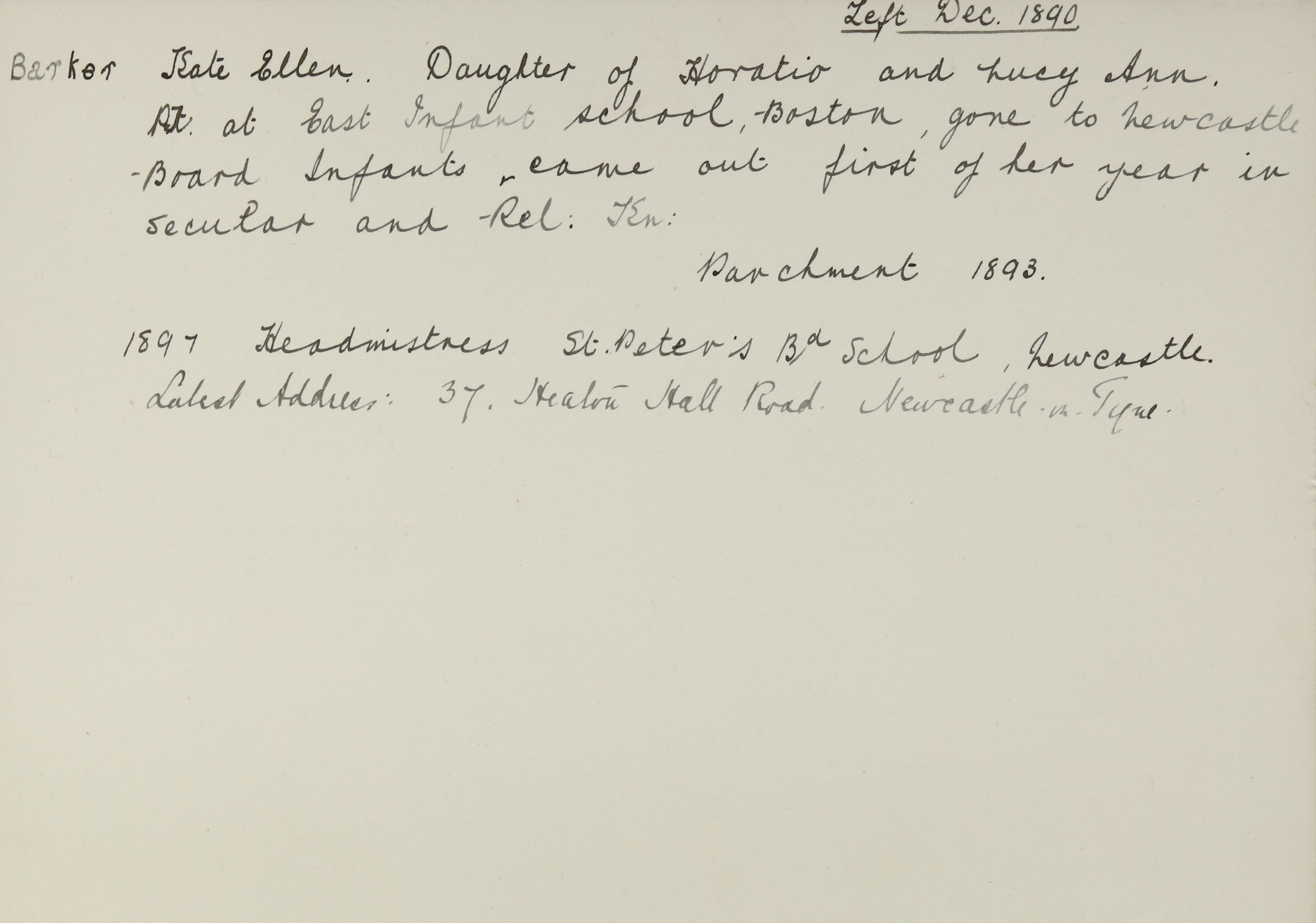 Appointed to S. Peter's Board School, Newcastle-on-Tyne.