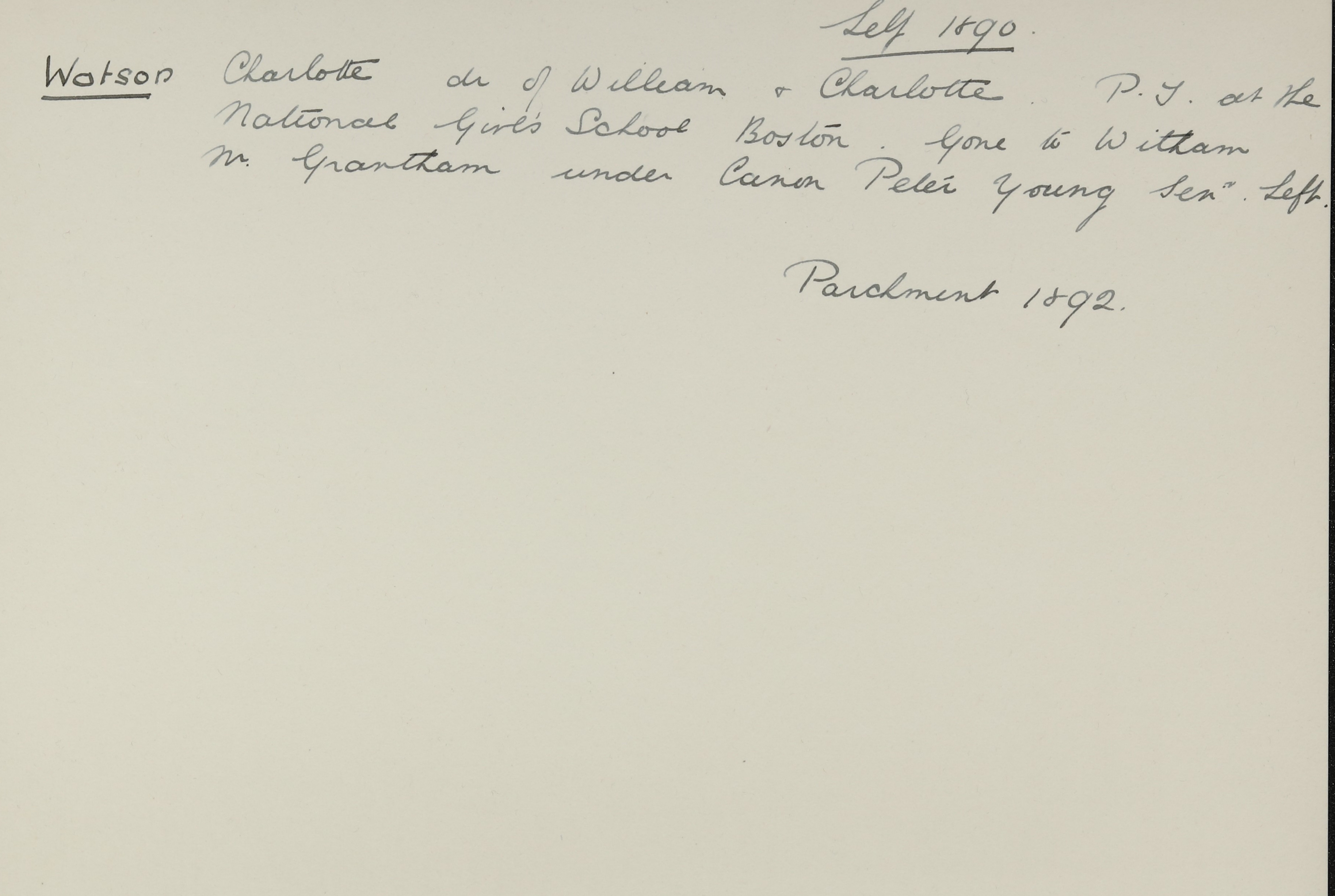 WATSON, Charlotte of Boston, Lincolnshire spinster died 30 July 1911. Probate Lincoln 28 February to Lydia Watson, spinster. Effects £530, 16s, 4d.