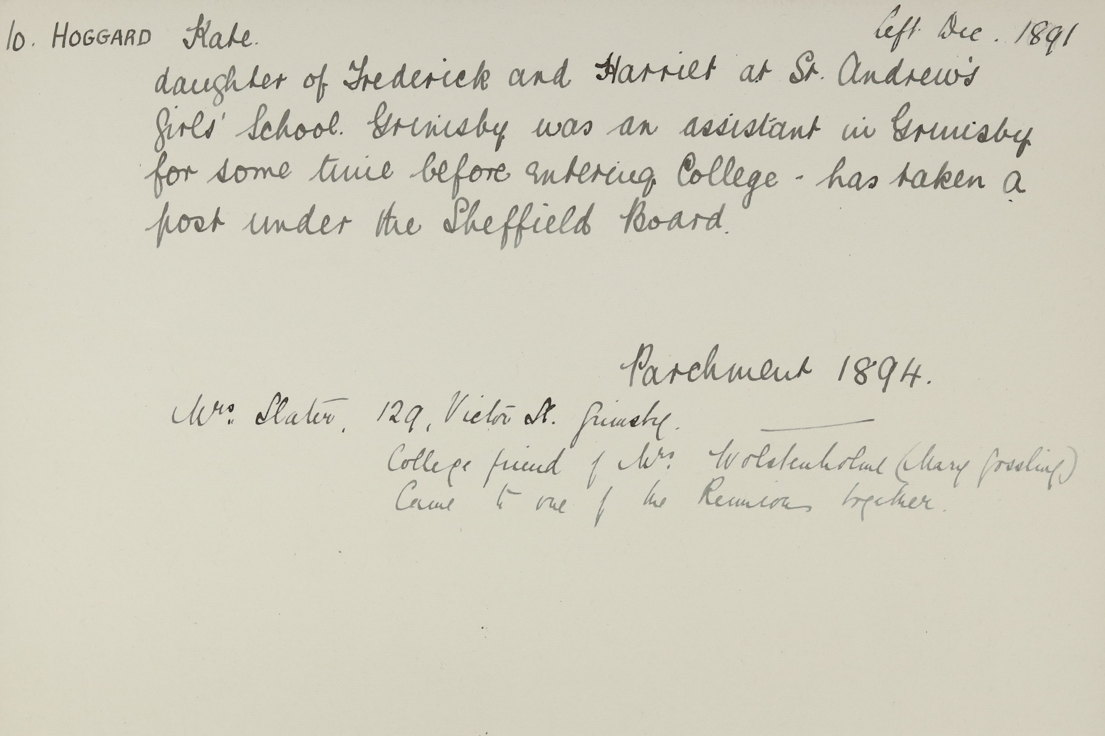 She is at Victor Street, Clee with Weelsby. Her father is listed as ‘Grocer’. Kate is listed as ‘Student Training College Lincoln’. Her mother and sister, Charlotte, are unlisted.