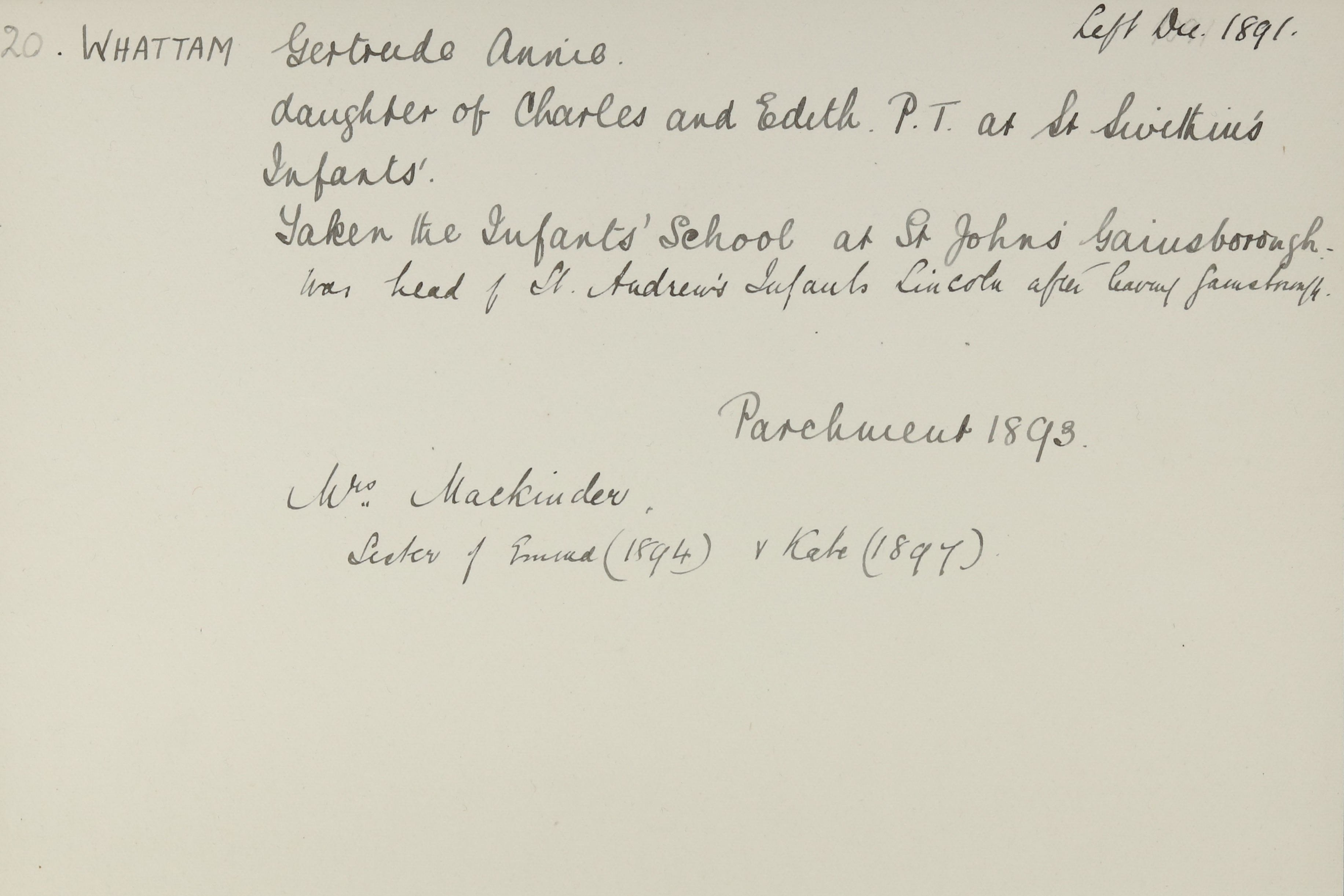 Appointed to St. Andrew's Infant School, Lincoln. Head.