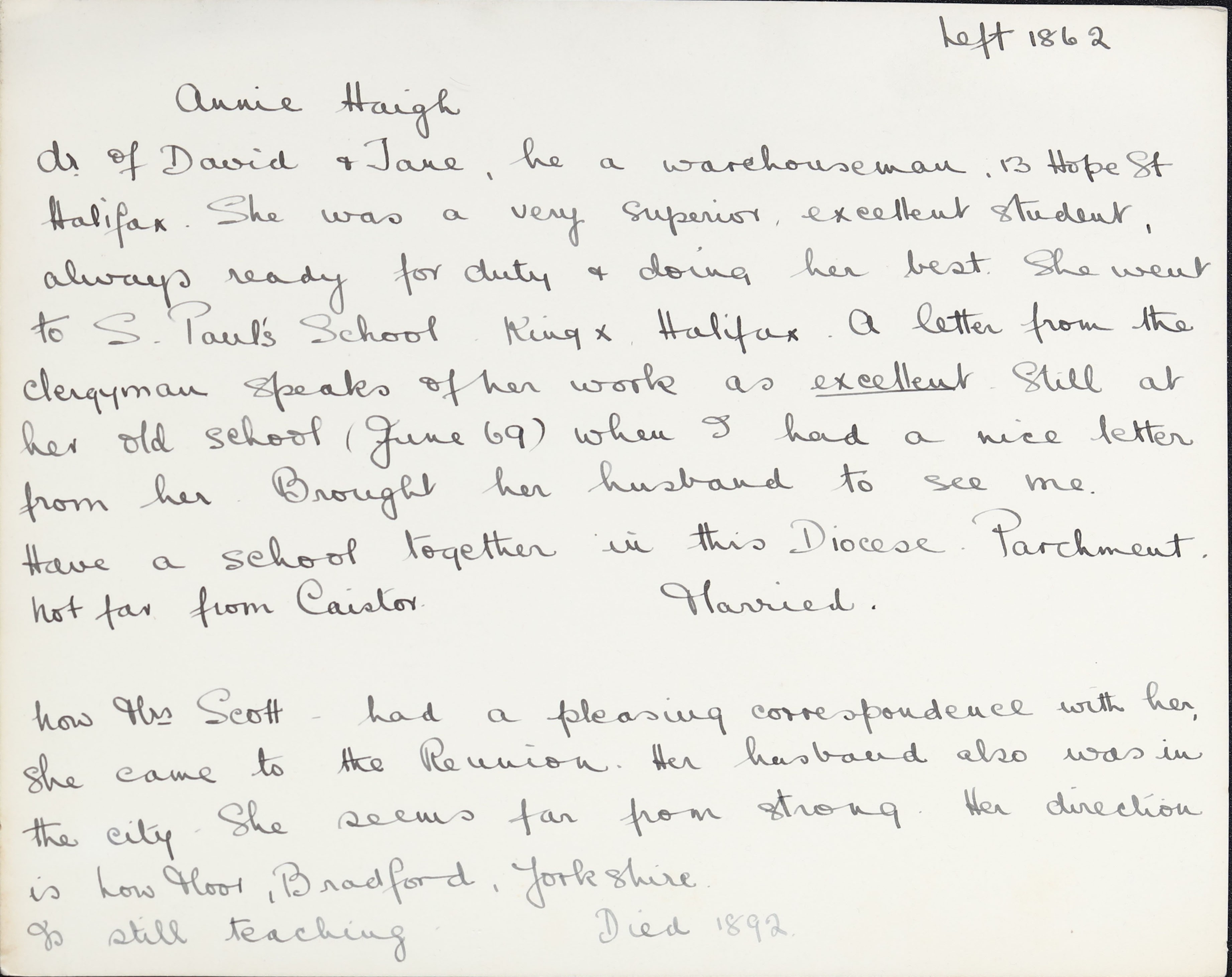 Father: David Haigh (b. 1813) – Woolsorter in 1871