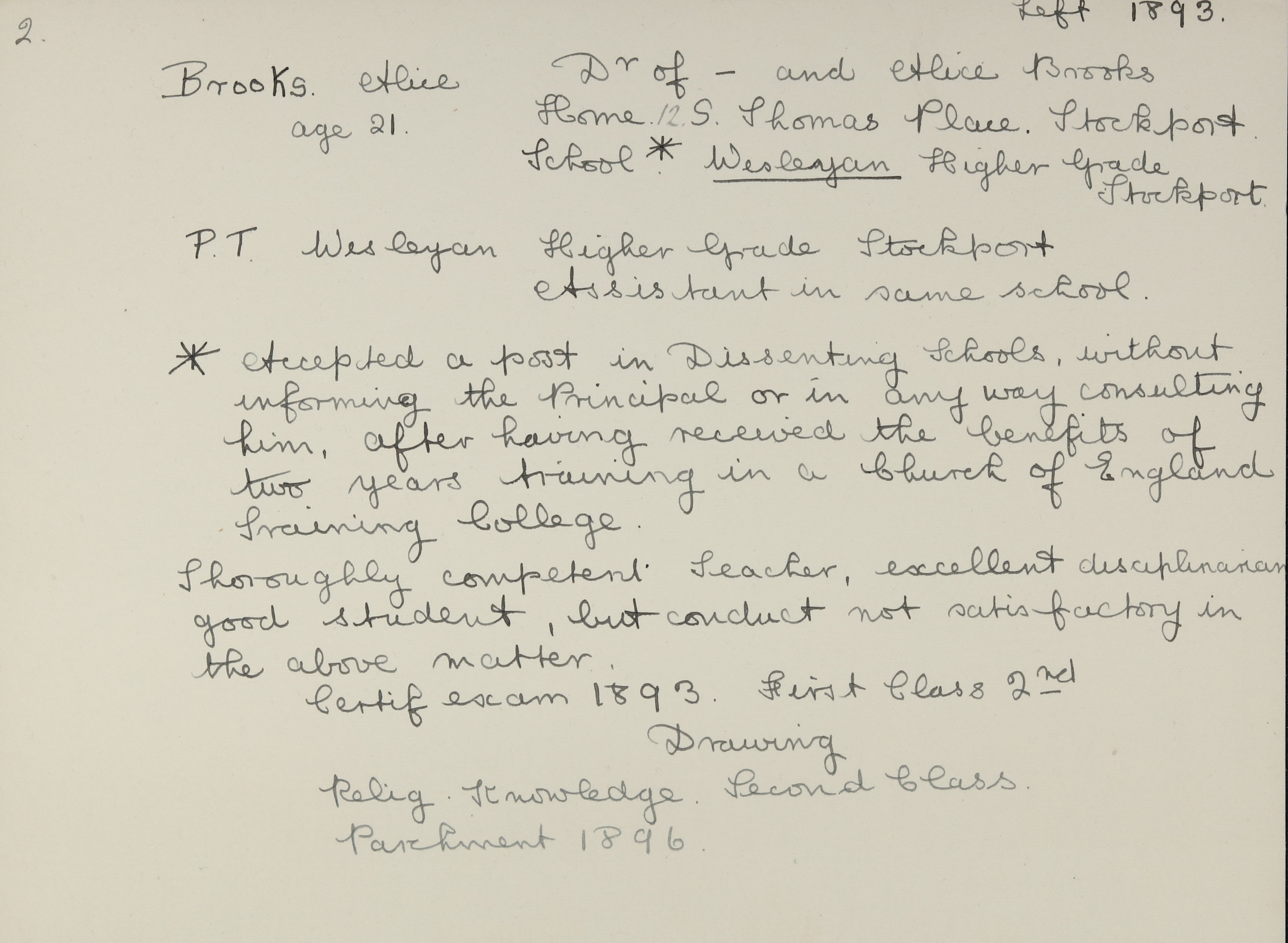 She is at 12 St. Thomas Place, Stockport. Her mother is an unlisted widow. Her sister, Ada, is listed as ‘Railway Clerk’. Alice and her sister, Helen, are listed as ‘Elementary Teacher’.