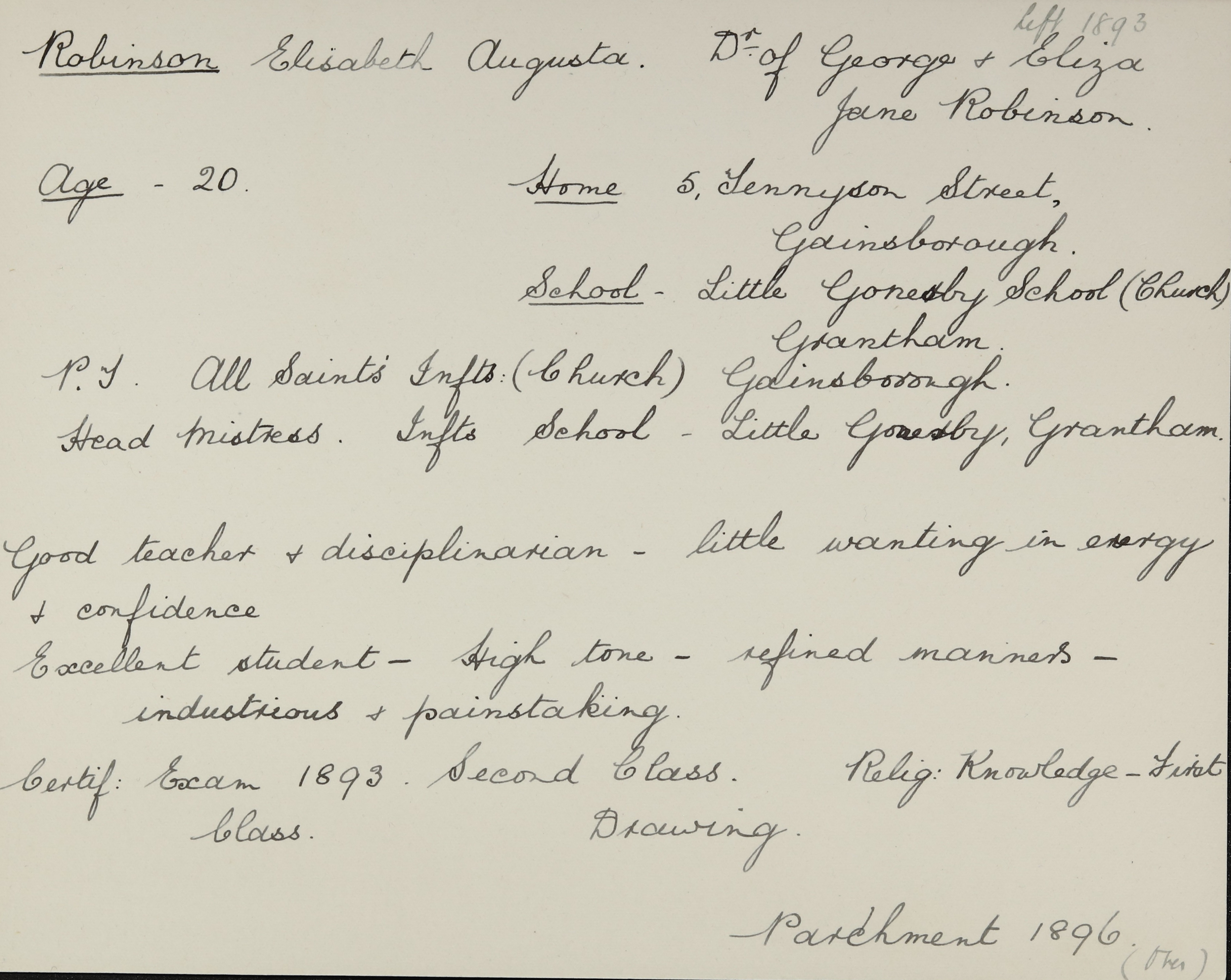 Appointed to St. John's Infants' Gainsborough, Head.