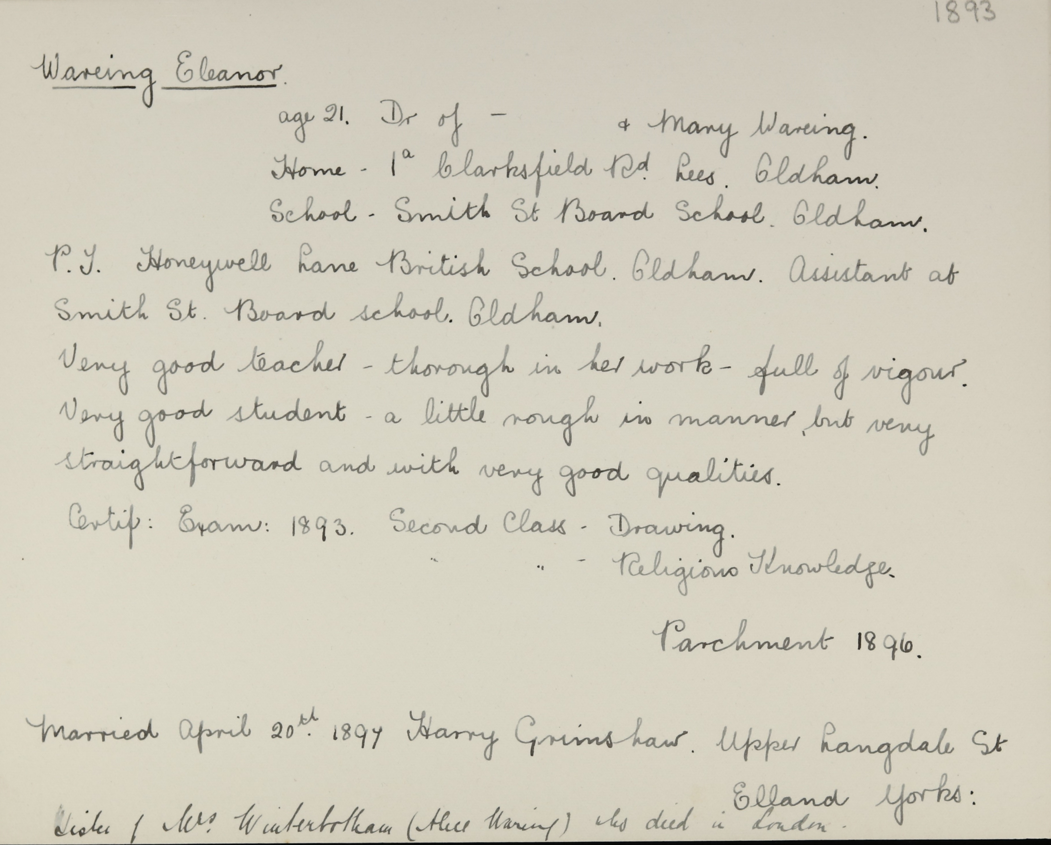 Marriage: 20 April 1897, Oldham