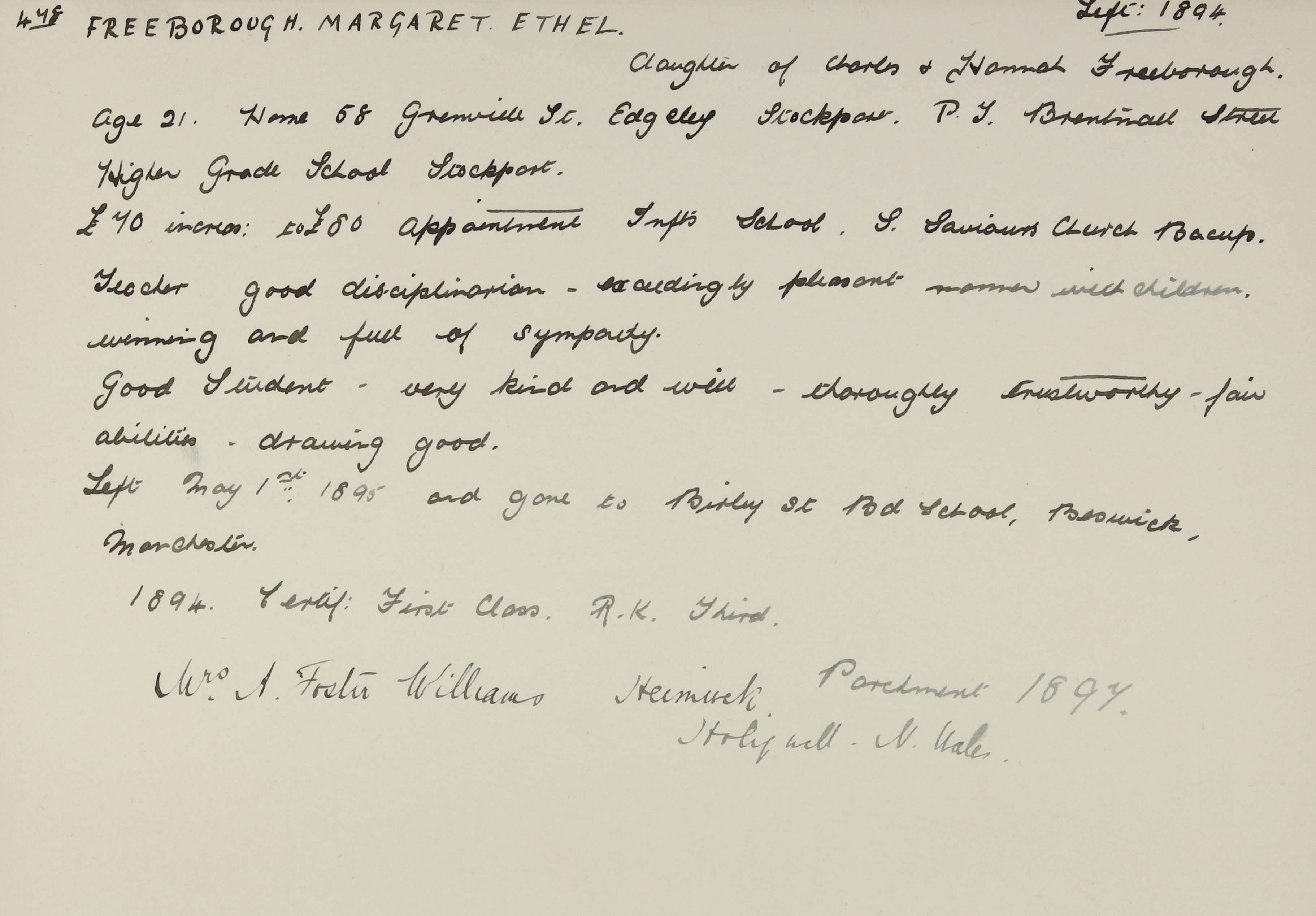 Appointed to Birley Street Board School, Beswick, Manchester. Assistant.
