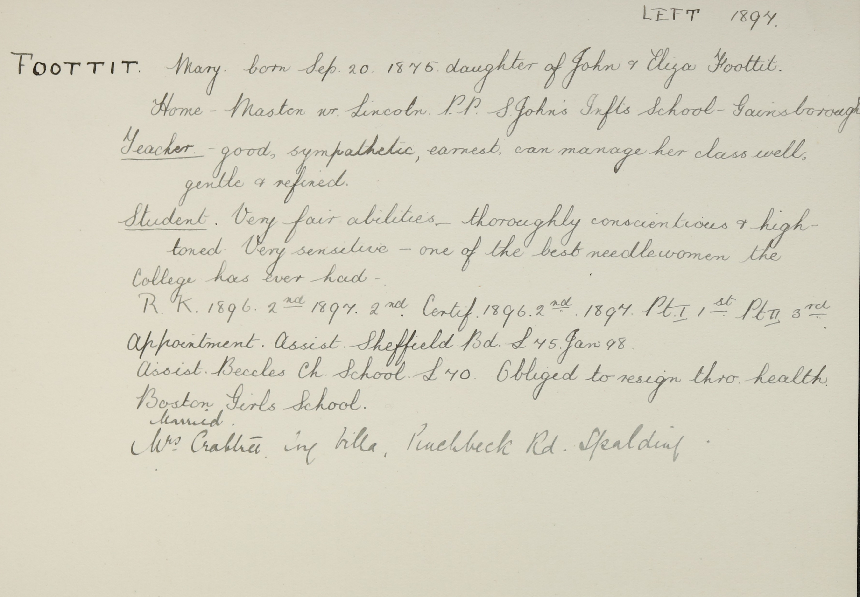 Appointed to Sheffield Board School. Salary £70. Assistant.
