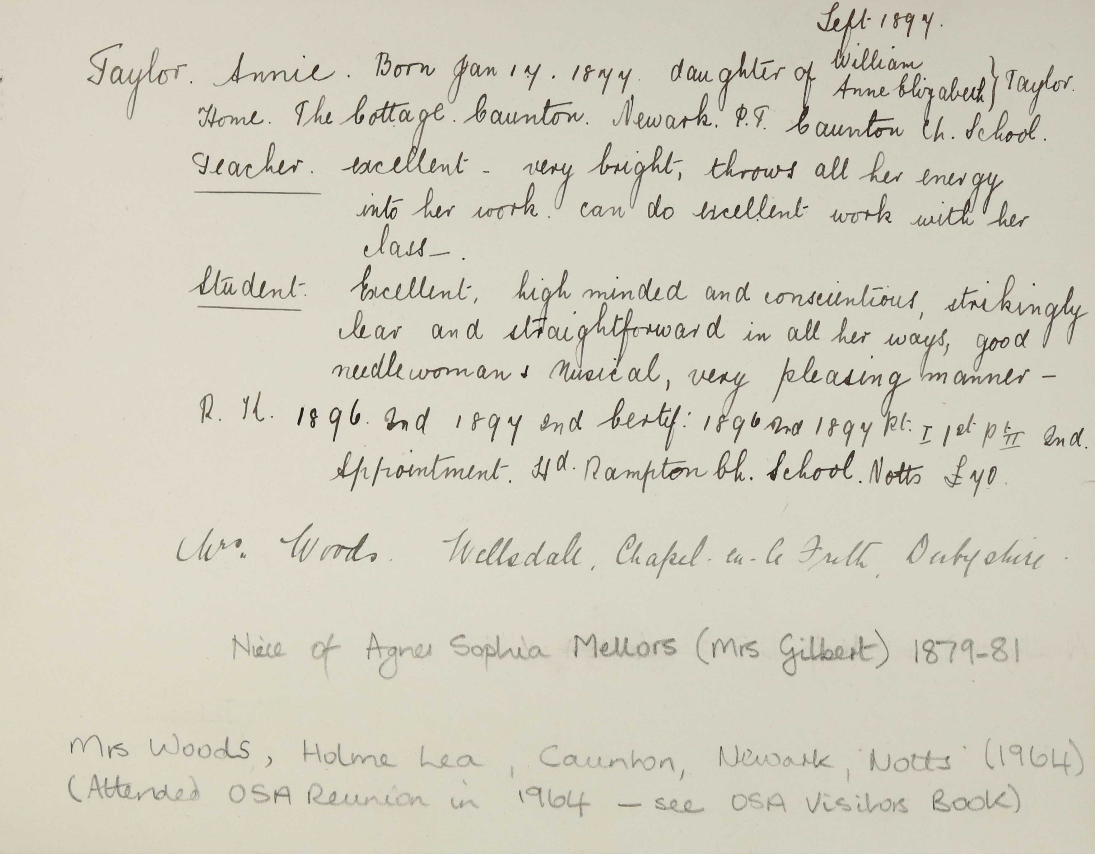 Mother: Annie Elizabeth Taylor (b. 1844)