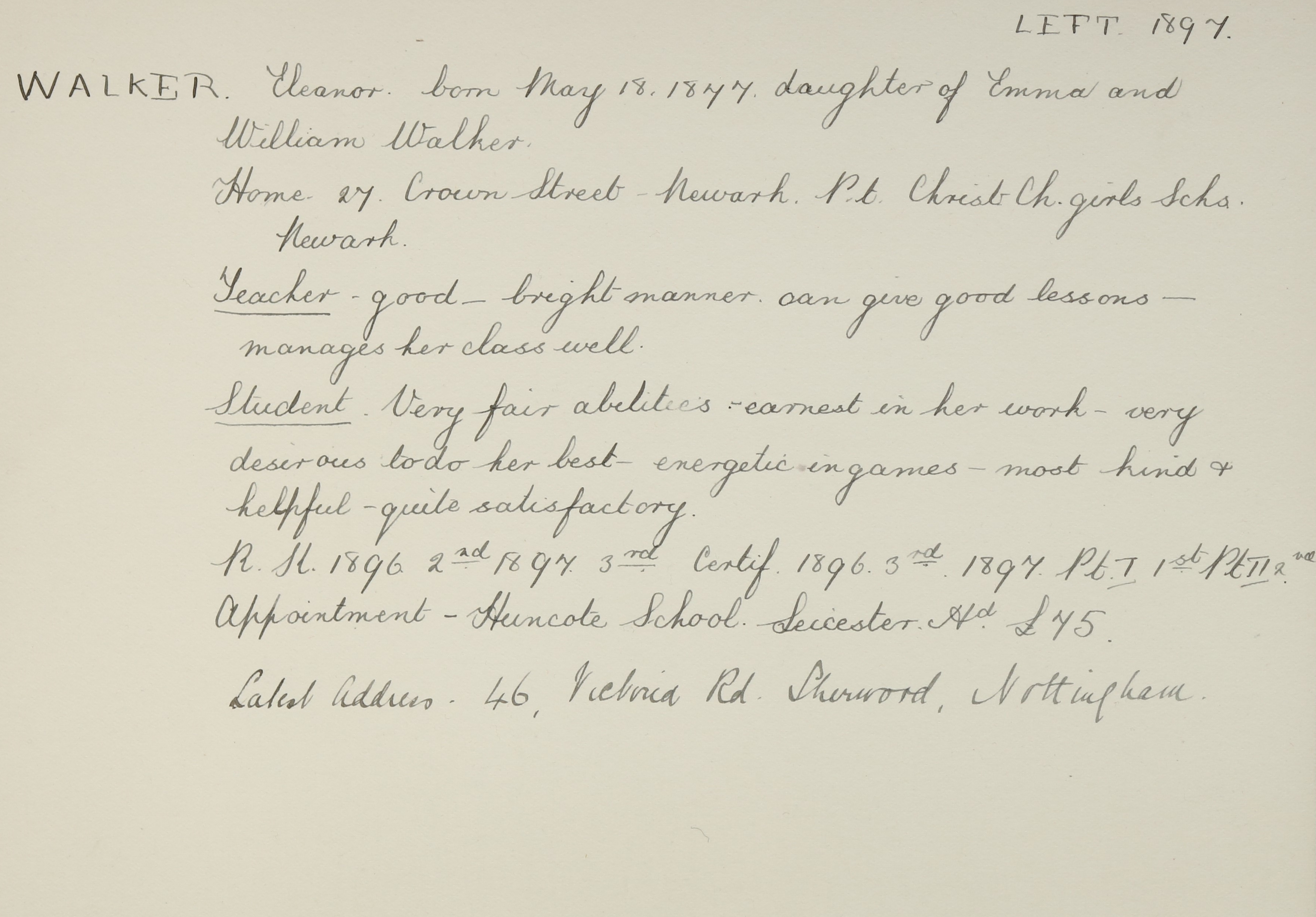 Appointed to Hancote Church School, Leicester. Salary £75. Head.