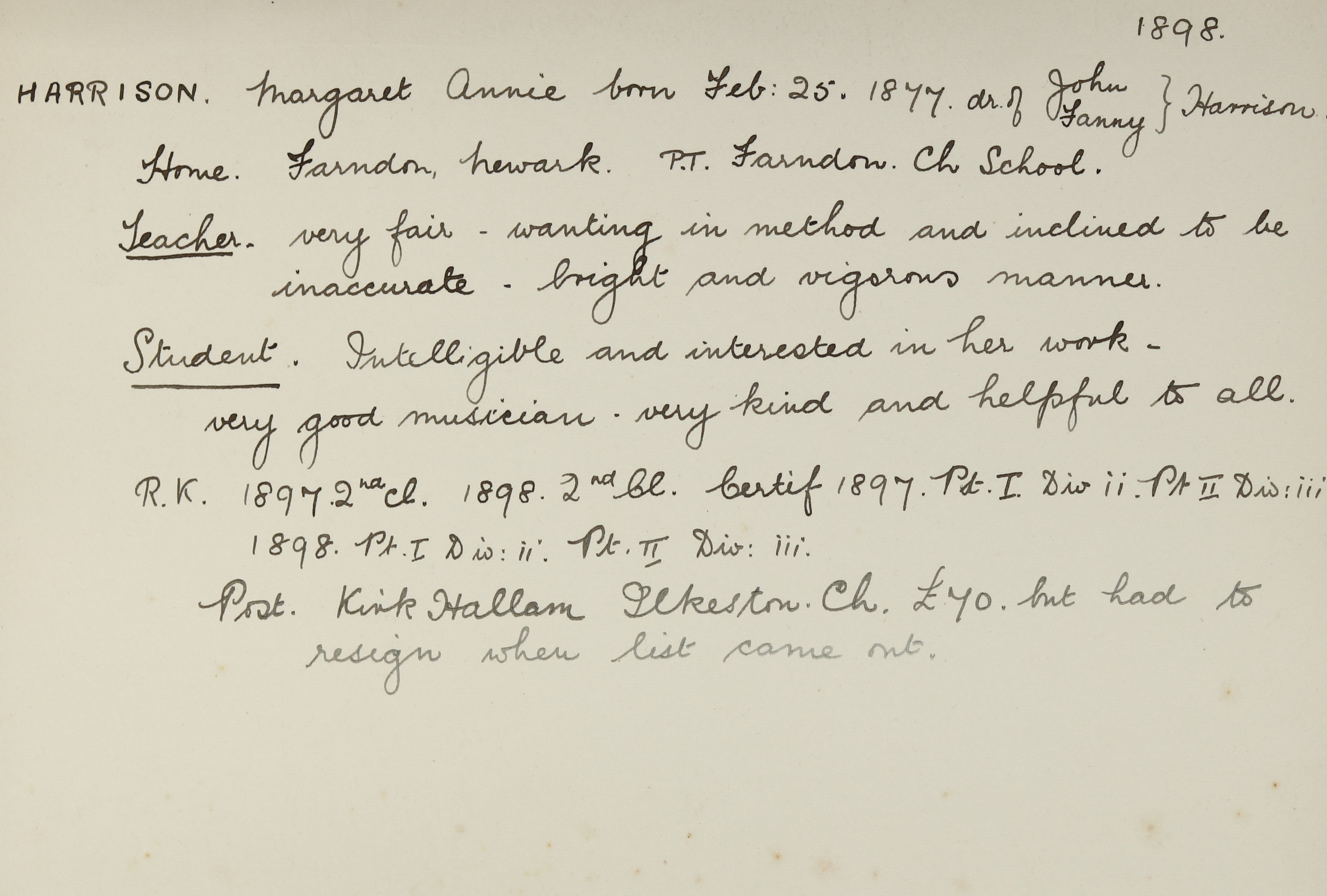 Appointed to Kirk Hallam Church School, Ilkeston. Salary £70.