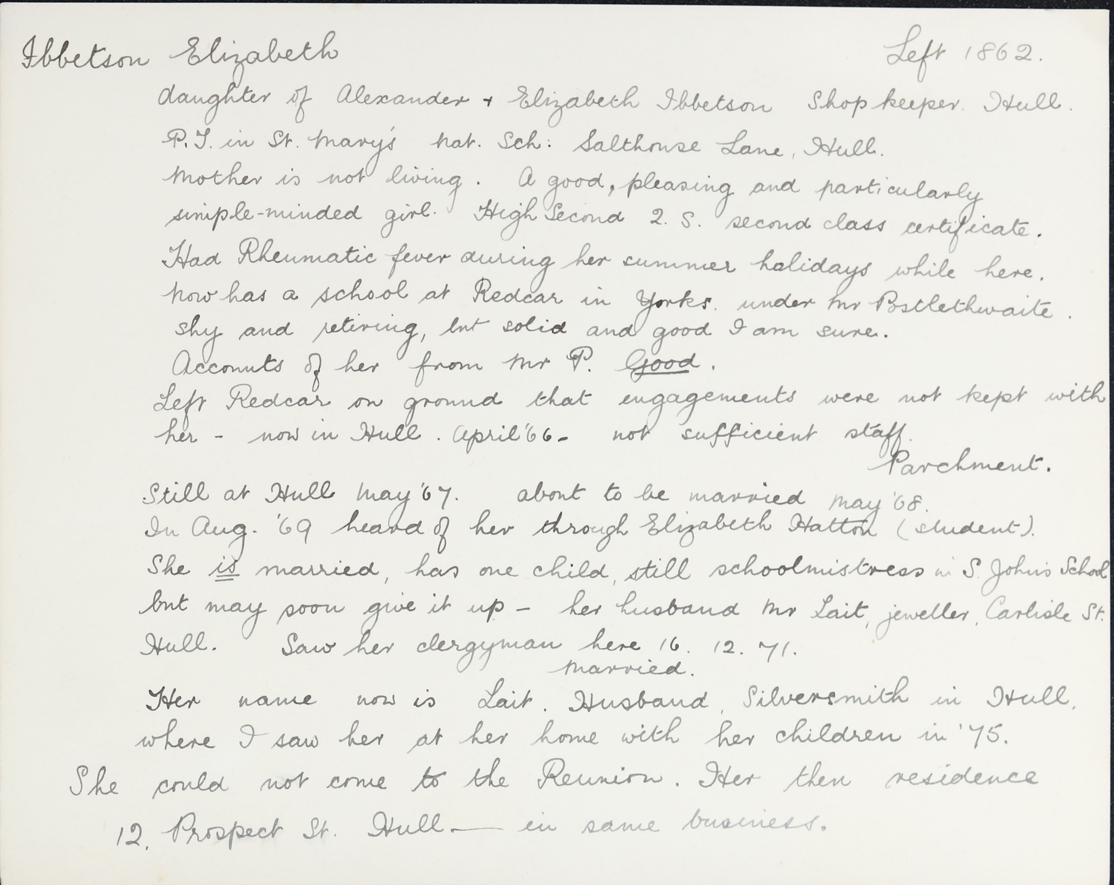 She is at Arlington Avenue, Cottingham. Her husband is listed as ‘Watch Maker and Jeweller’. Elizabeth and her daughters (Florence and Margaret) are unlisted.