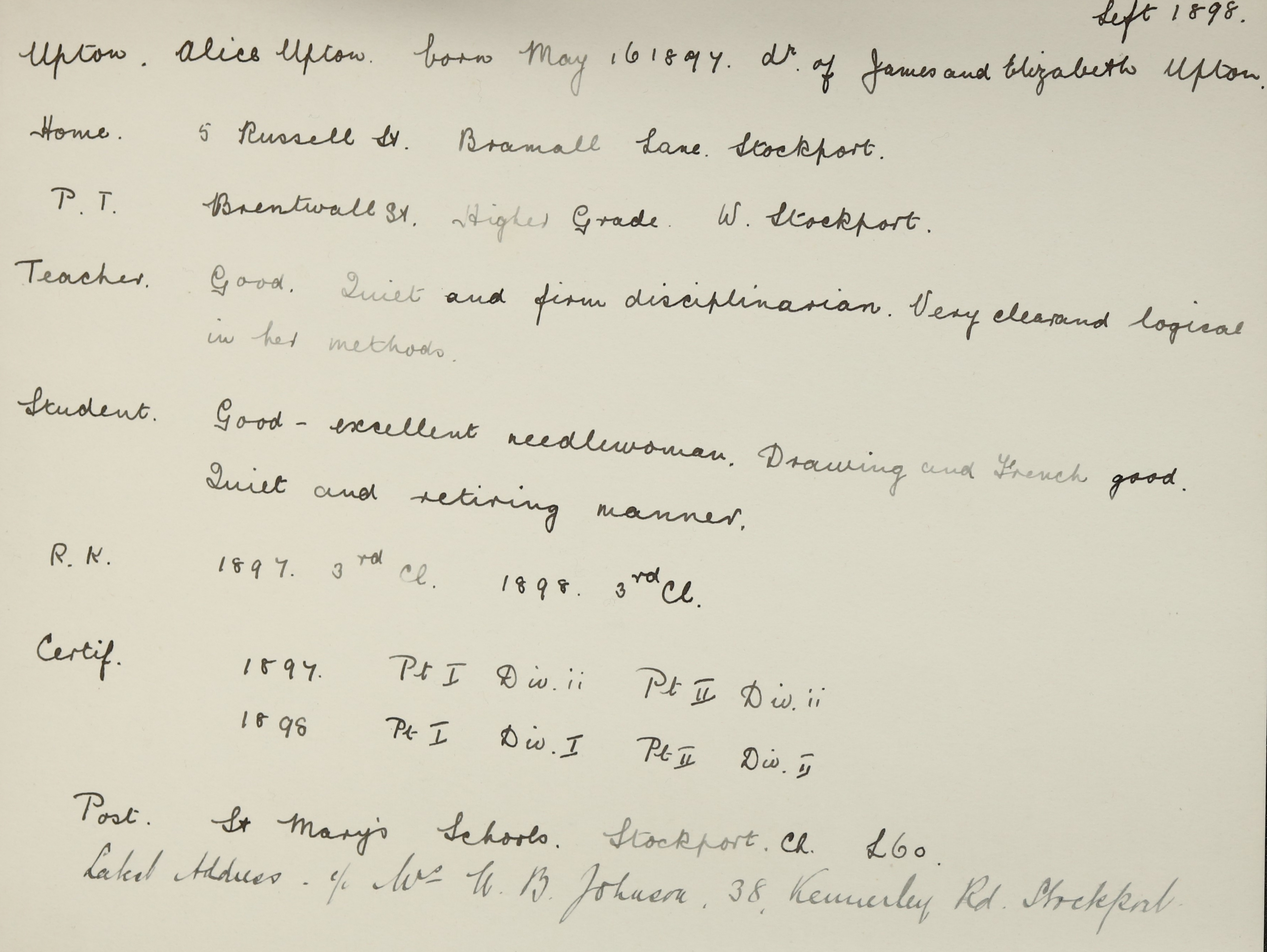 Appointed to S. Mary's School, Stockport. Salary £60.