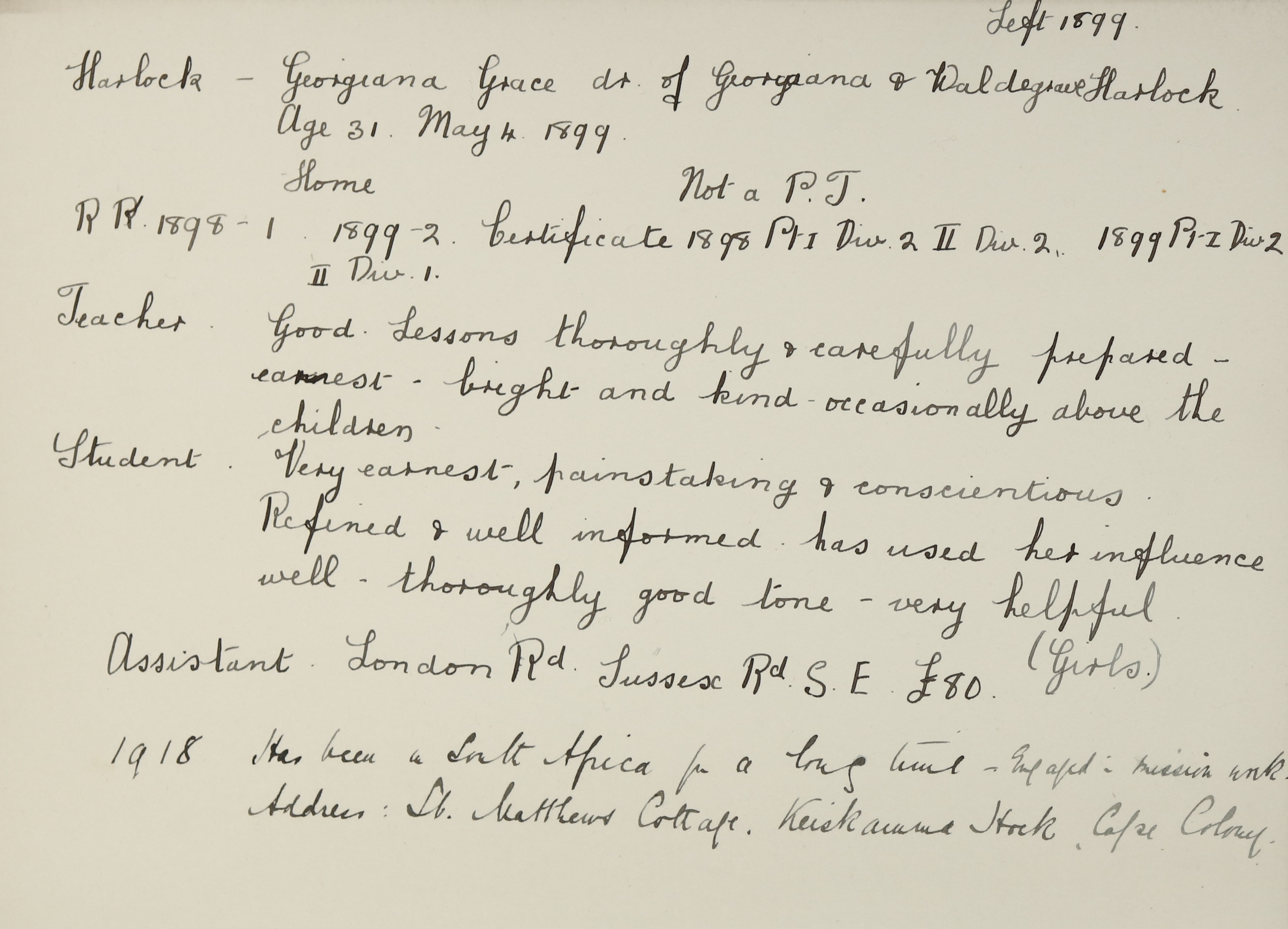 Appointed to Grahamstown Mission Schools, S. Africa.