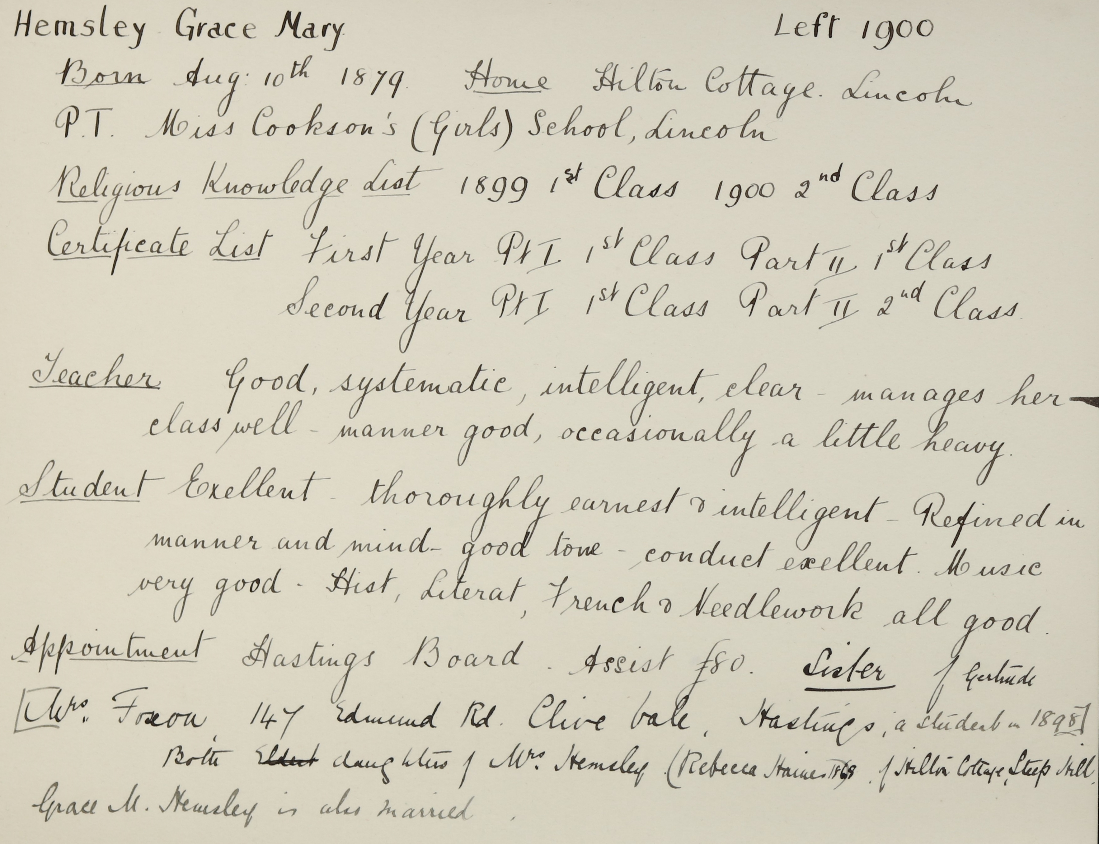 Sisters: Gertrude Mary Hemsley (b. 1878) [LDTC 1898], Eleanor Mary Hemsley (b. 1881), Mary Dorothea Hemsley (b. 1882)