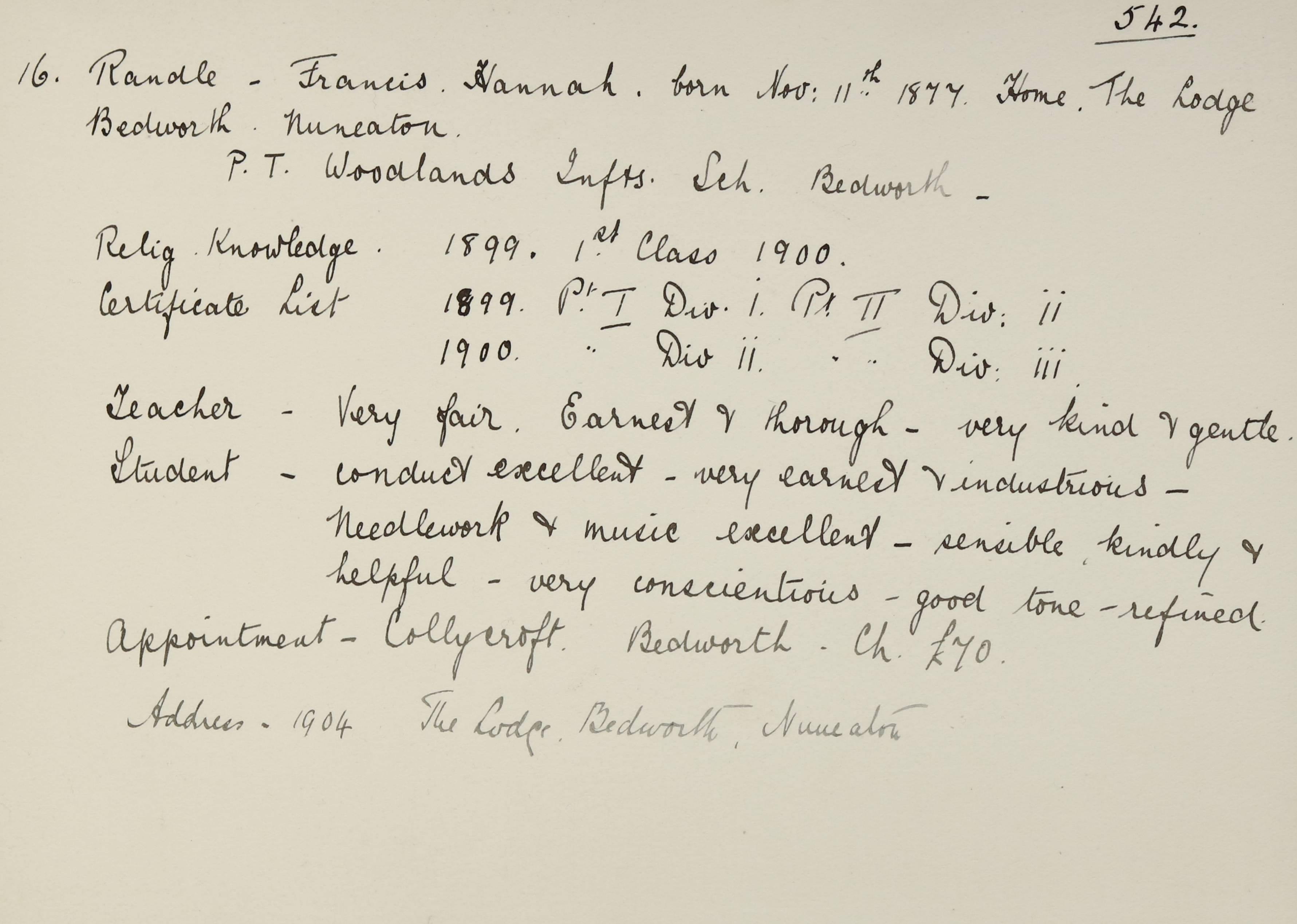 Appointed to Collycroft Bedworth, Church School, Assistant.