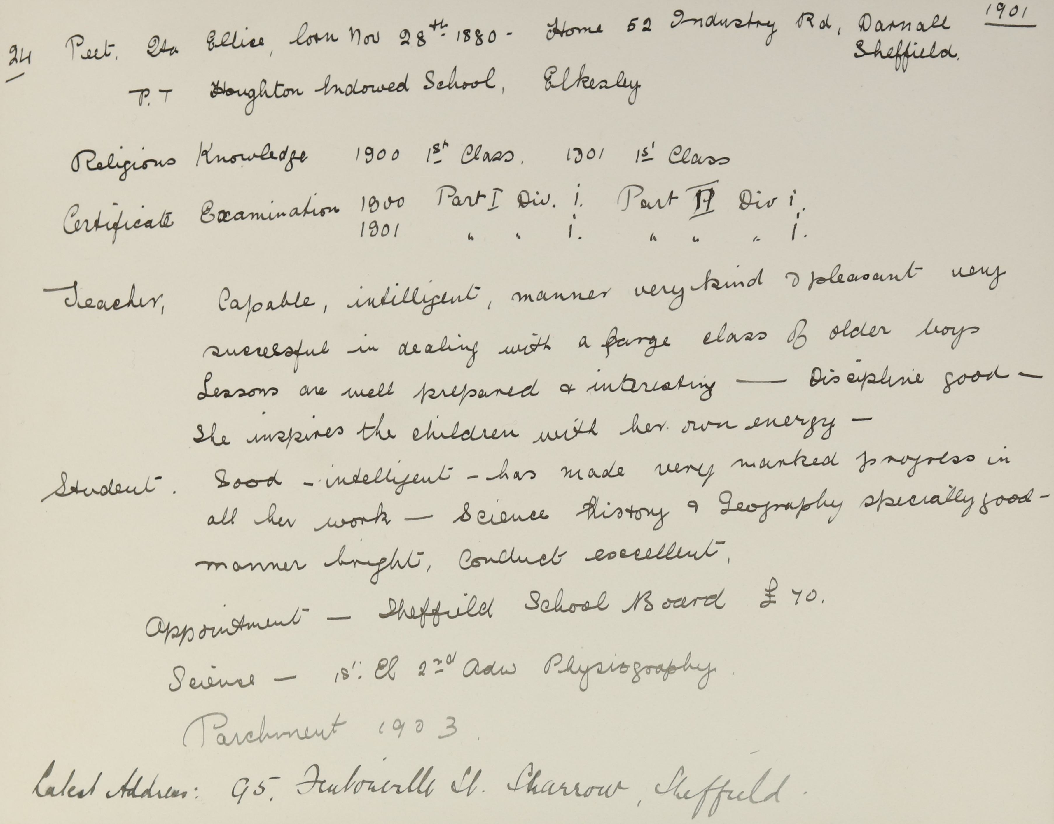 Appointed to Carbrook Girls', Sheffield, Assistant, £70.
