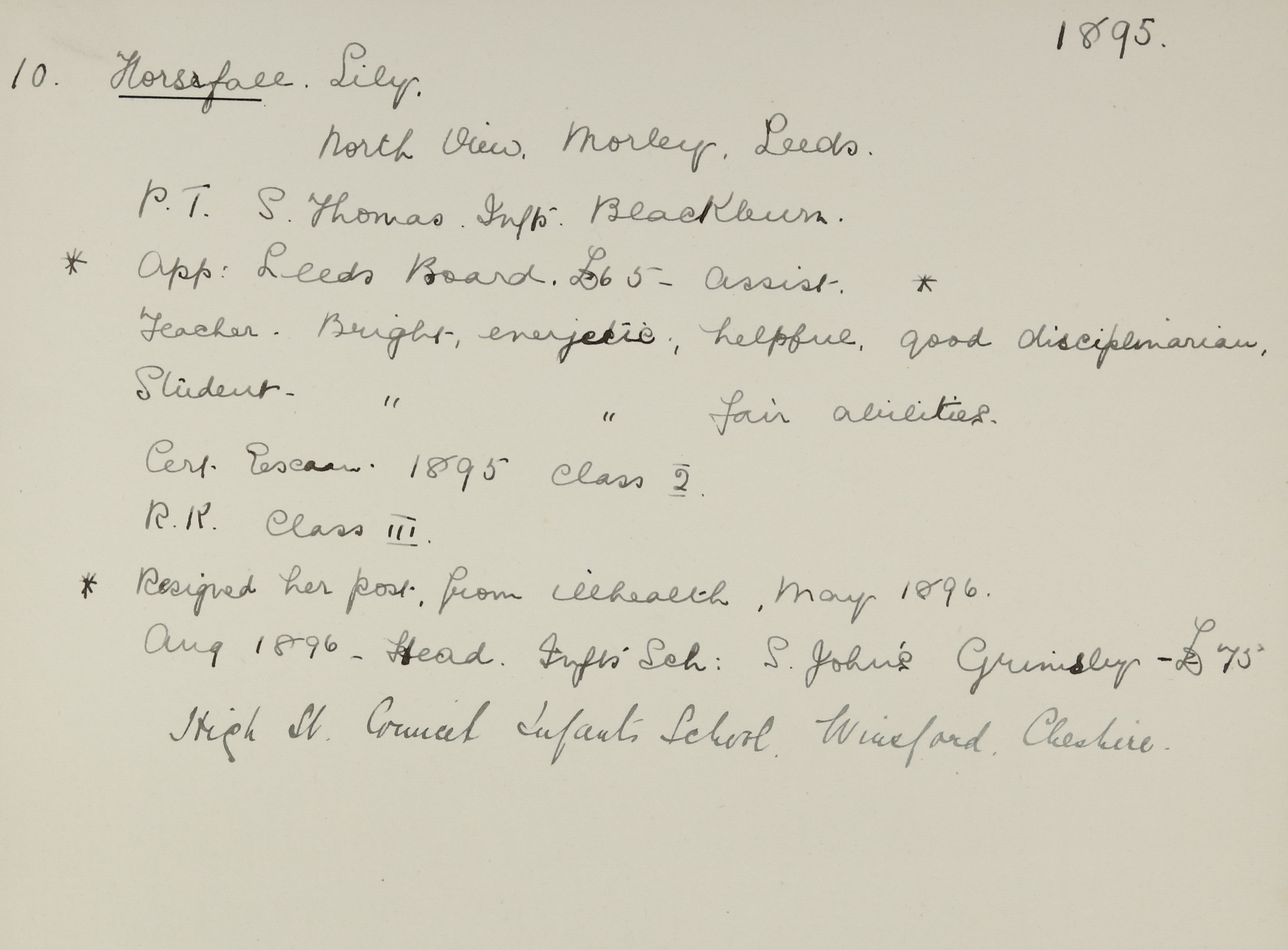 Appointed to Board School, Leeds. Salary £65. Assistant.