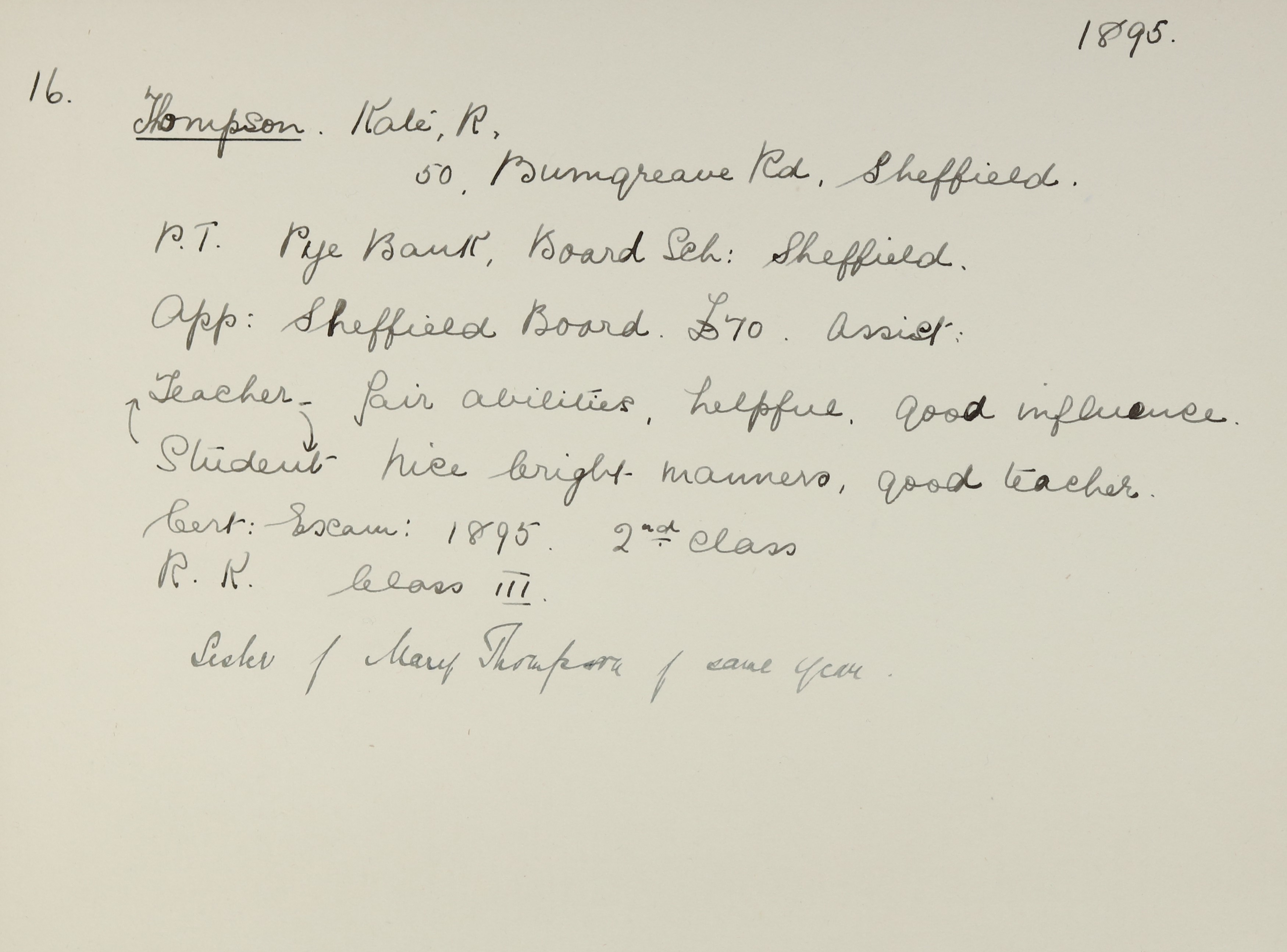 Appointed to Board School, Sheffield. Salary £70. Assistant.